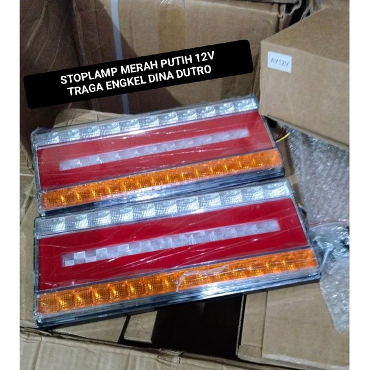Lampu LED mobil LAMPU STOPLAMP 12V TRAGA / DINA DUTRO MERAH PUTIH 33CM LAMPU REM BELAKANG PICKUP/TRUCK