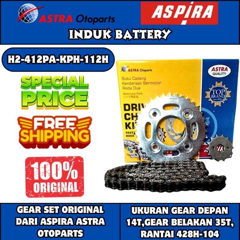 GIR SET SUPRA X 125 , KARISMA , KIRANA ASPIRA KPH ASTRA ORI 1 SET GEAR DEPAN BELAKANG PLUS RANTAI /variasi/modif/Taka Jaya Motor/Official/