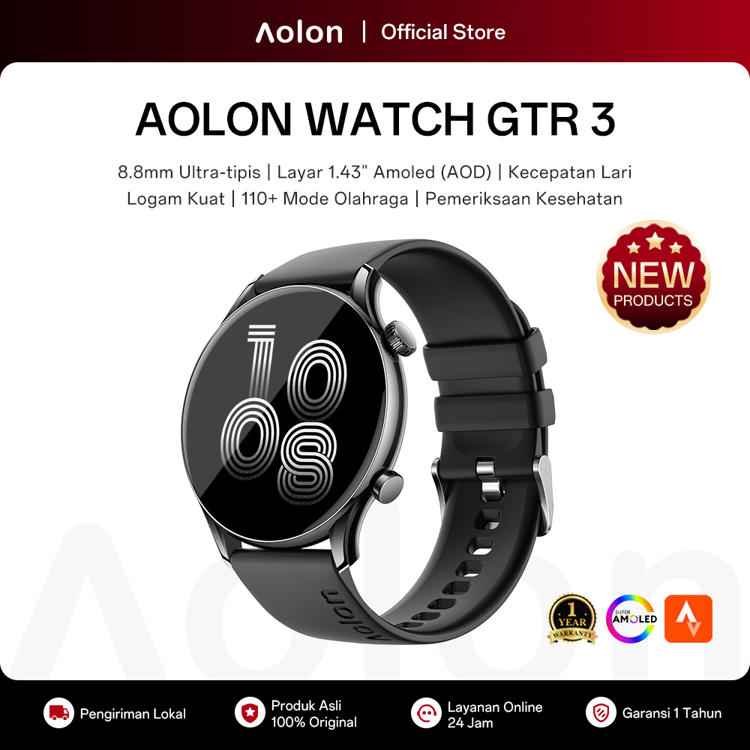 [Garansi 1 Tahun] Aolon GTR 3 Jam Tangan Smartwatch Tipis Original 46mm Amoled AOD Ultra-thin Kecepatan Berlari Detak
