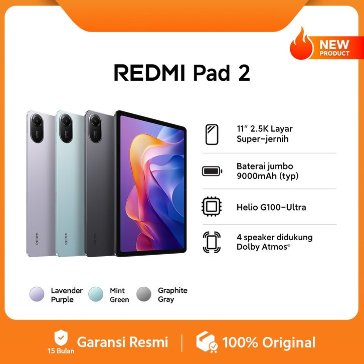 XIAOMI REDMI PAD 2 4/128GB HELIO G100-ULTRA 11" 2.5 LAYAR SUPER JERNIH 9000mAh GARANSI RESMI