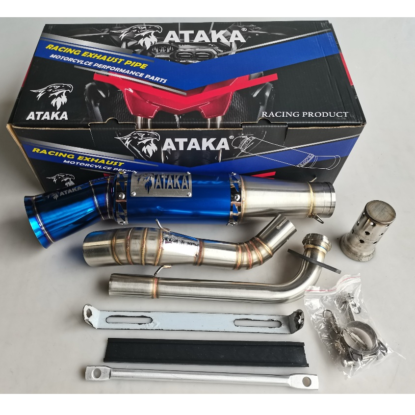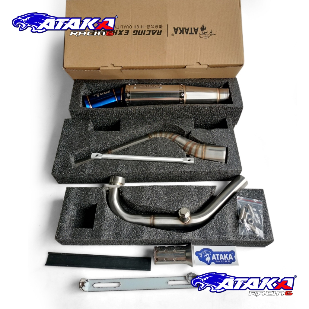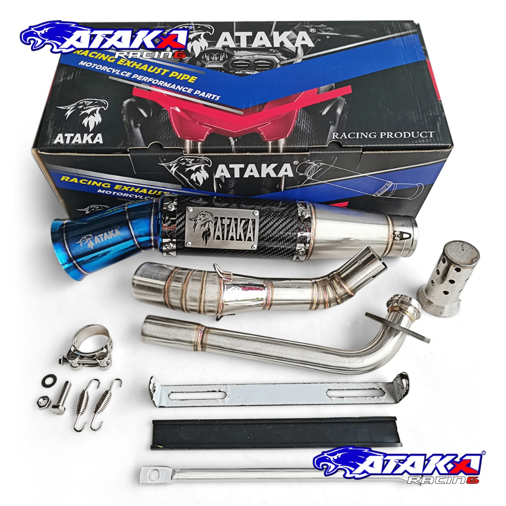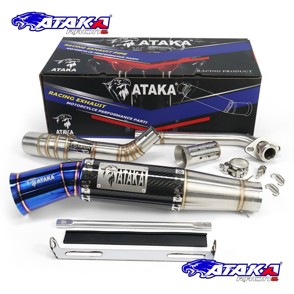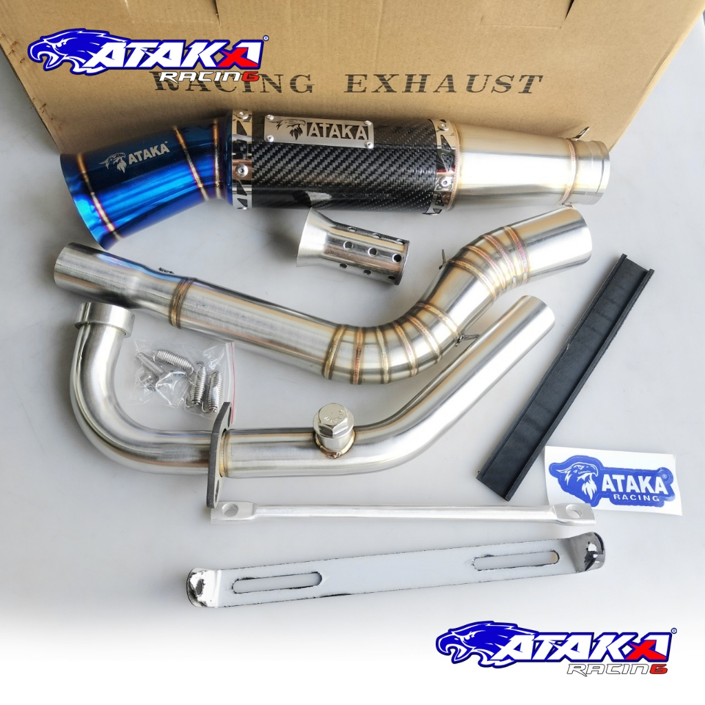 KNALPOT AEROX 28 MM MX KING 32 MM TITANIUM SILVER SERAT KARBON BY ATAKA RACING