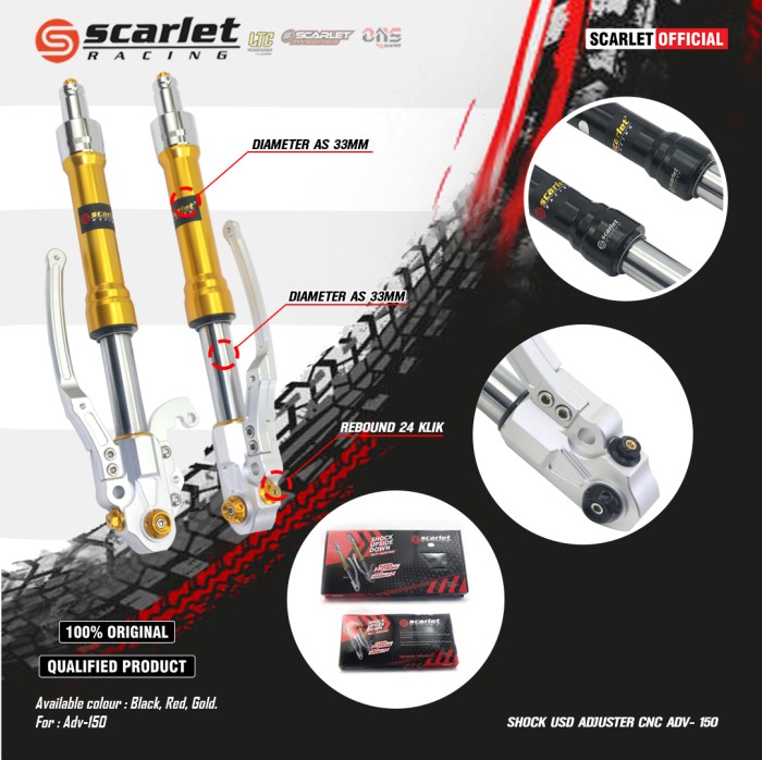 SCARLET RACING SHOCK SKOK DEPAN UPSIDE DOWN USD ADJUSTER CNC ADV 150