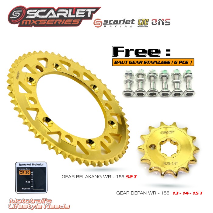 SCARLET RACING GEAR SET GIGI TARIK GIR WR 155 DEPAN BELAKANG