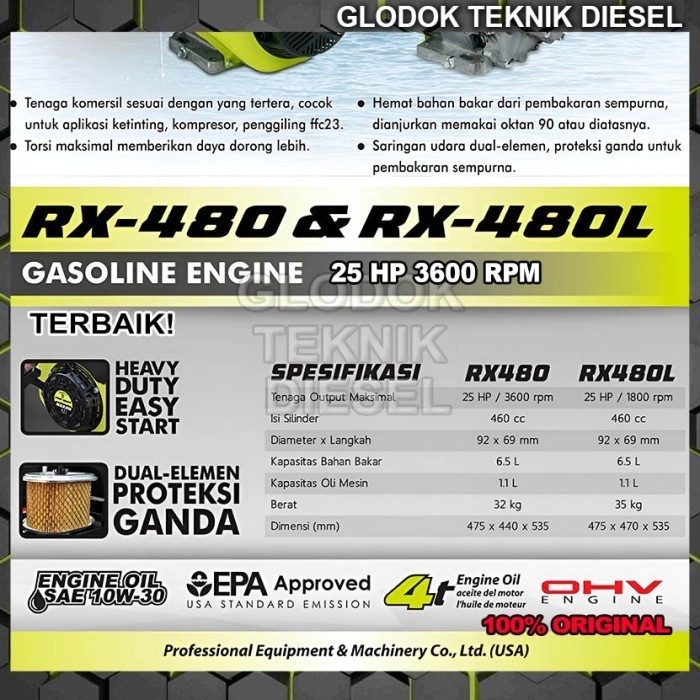 Proquip Mesin Penggerak Bensin 25 HP / Gasoline Engine RX480L Original
