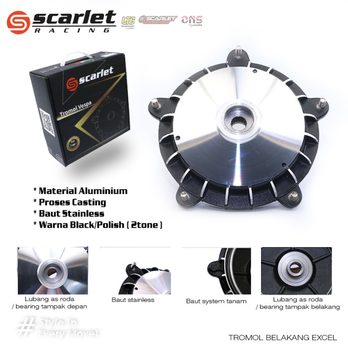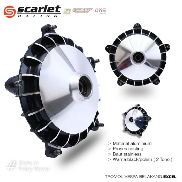 SCARLET RACING TROMOL TROMBOL SET DEPAN BELAKANG VESPA EXCEL