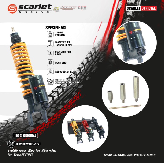 SCARLET RACING SHOCK BREAKER SKOK BELAKANG VESPA 7822 PX SERIES