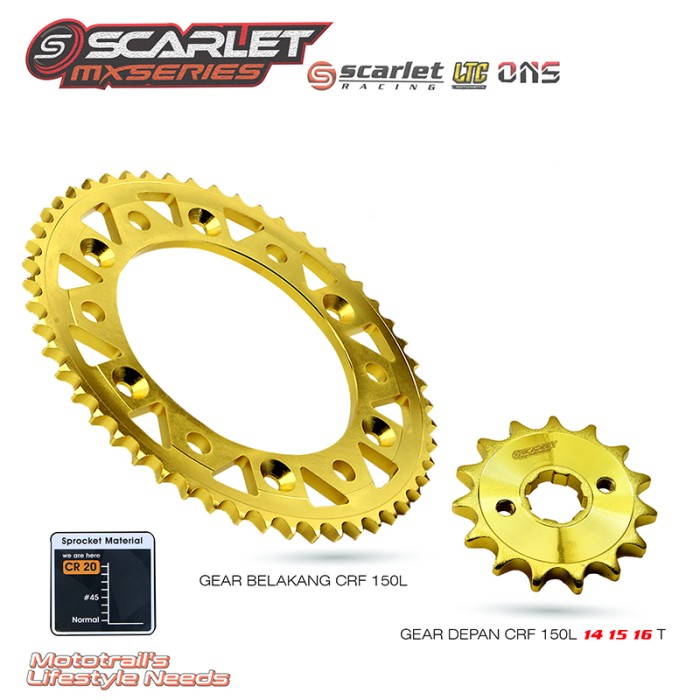 SCARLET RACING GEAR SET GIR KLX DEPAN BELAKANG 43 T