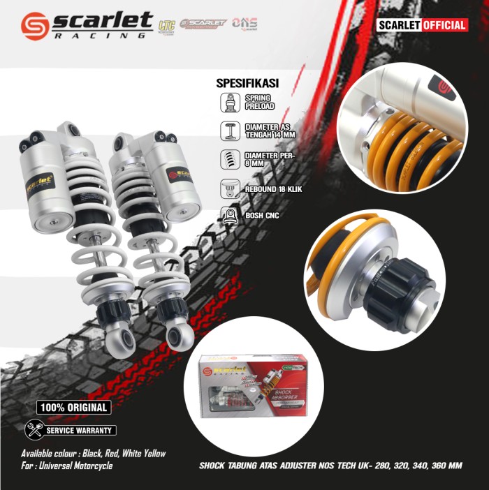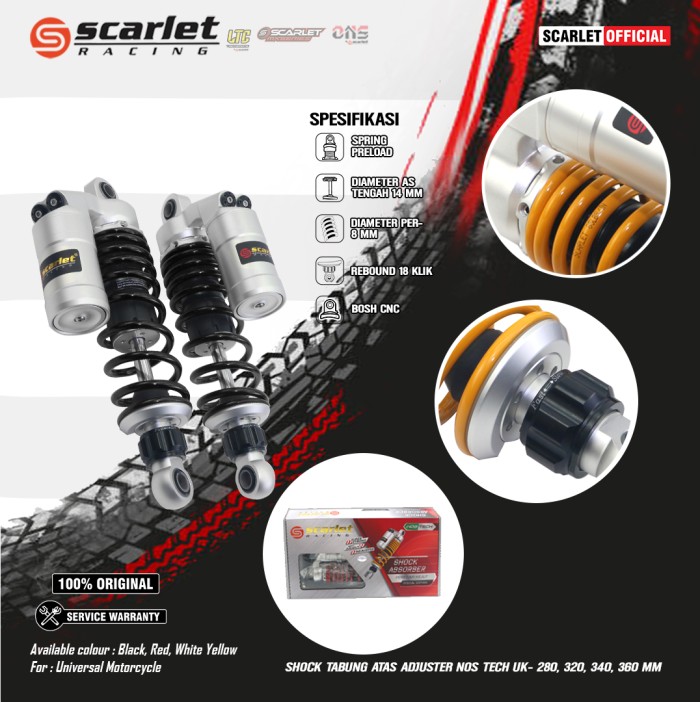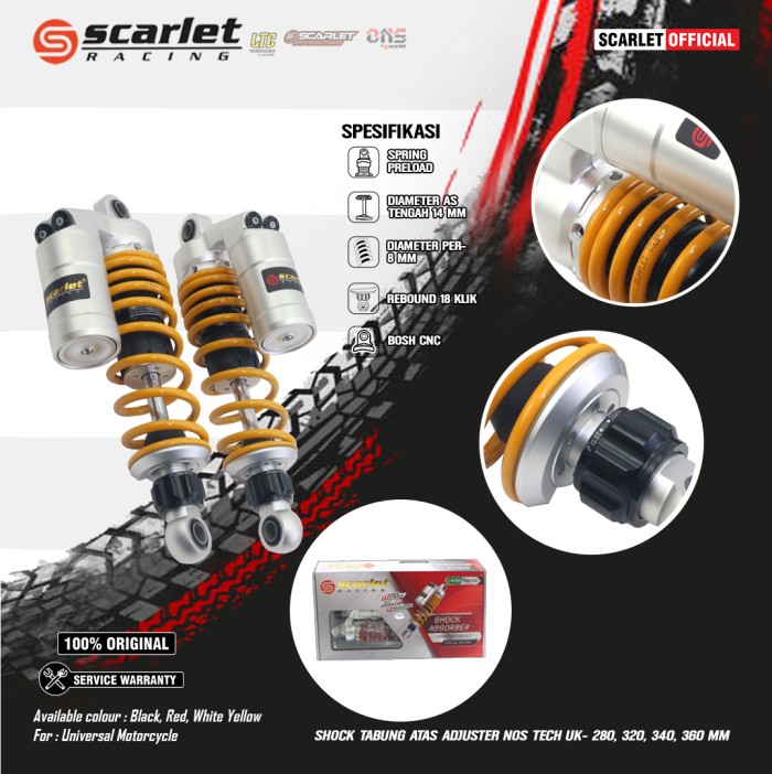 SCARLET RACING SHOCK SKOK TABUNG ATAS NOS TECH UK 280 320 340 360 MM