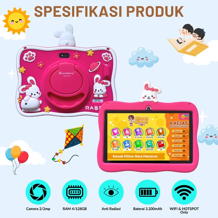 Tablet Anak Android Smartberry Kids Study Tab 7Inch B89 Plus B93 B95 Ram 4GB 128GB 2 Camera