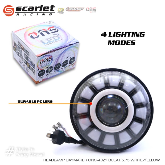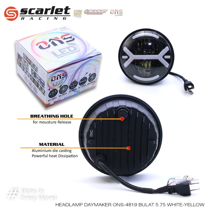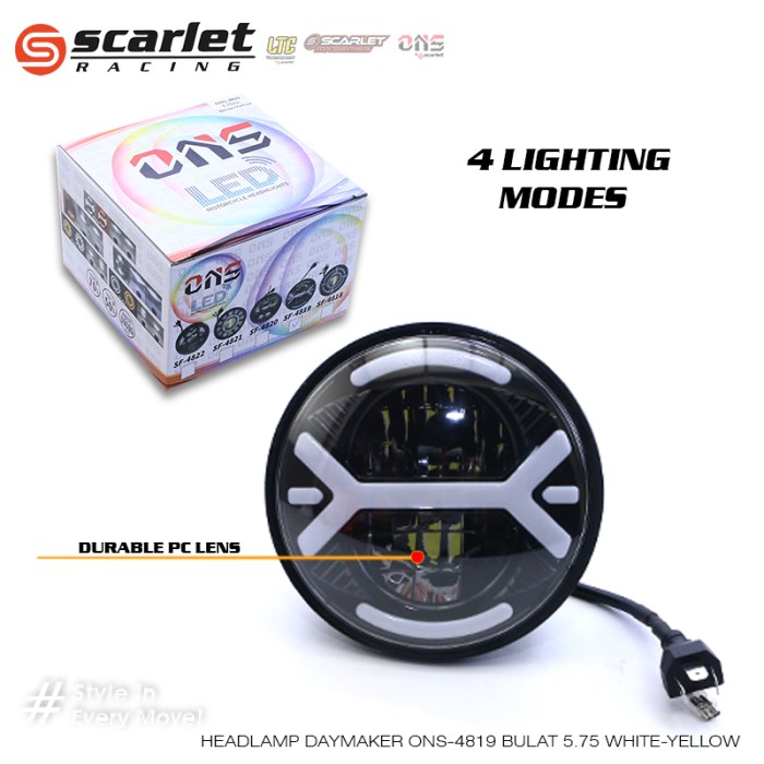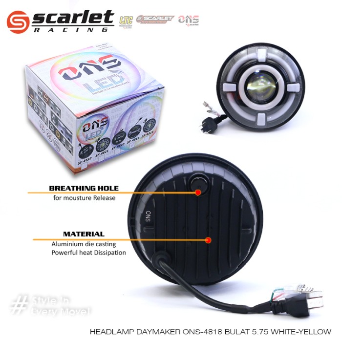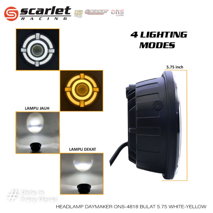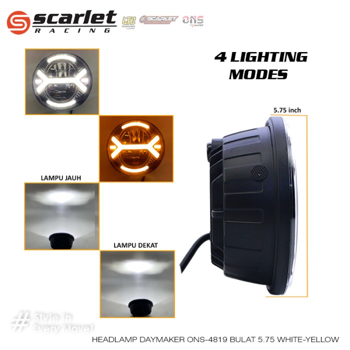 SCARLET ONS HEADLAMP LED LAMPU DEPAN BULAT 5.75" 4818 4819 4821
