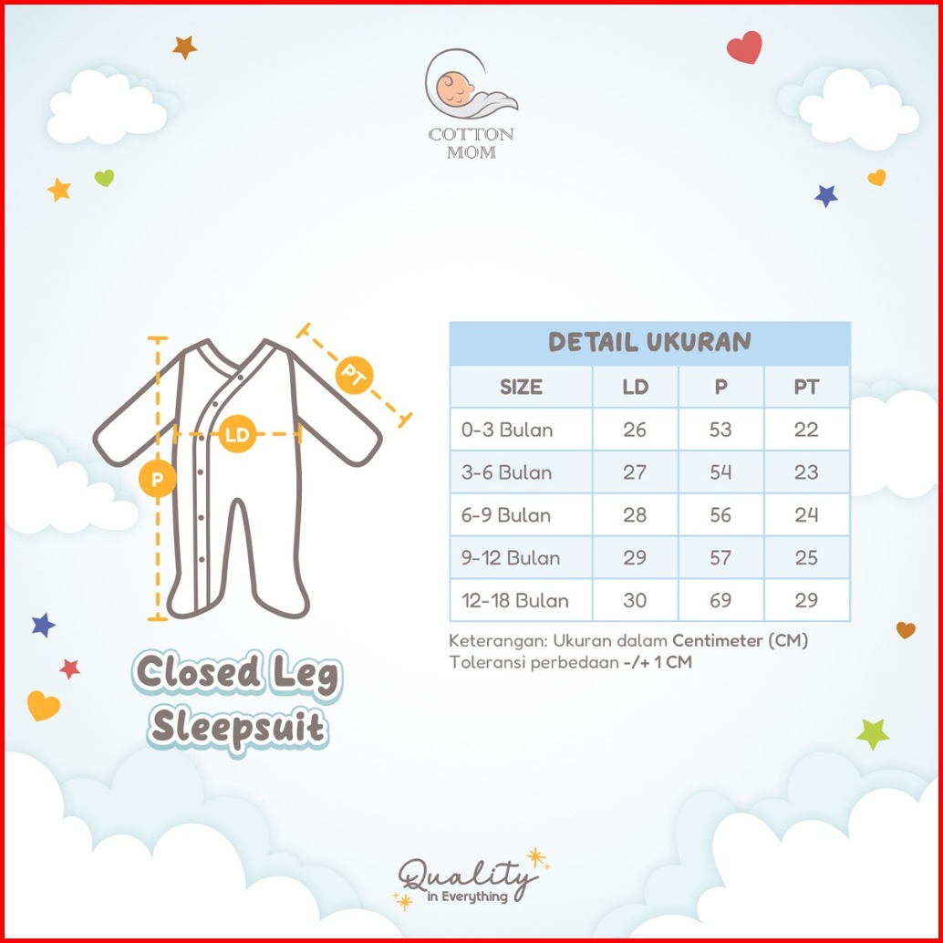 Baju Sleepsuit Kaki Tutup Closed Leg Anak Bayi Cotton Mom