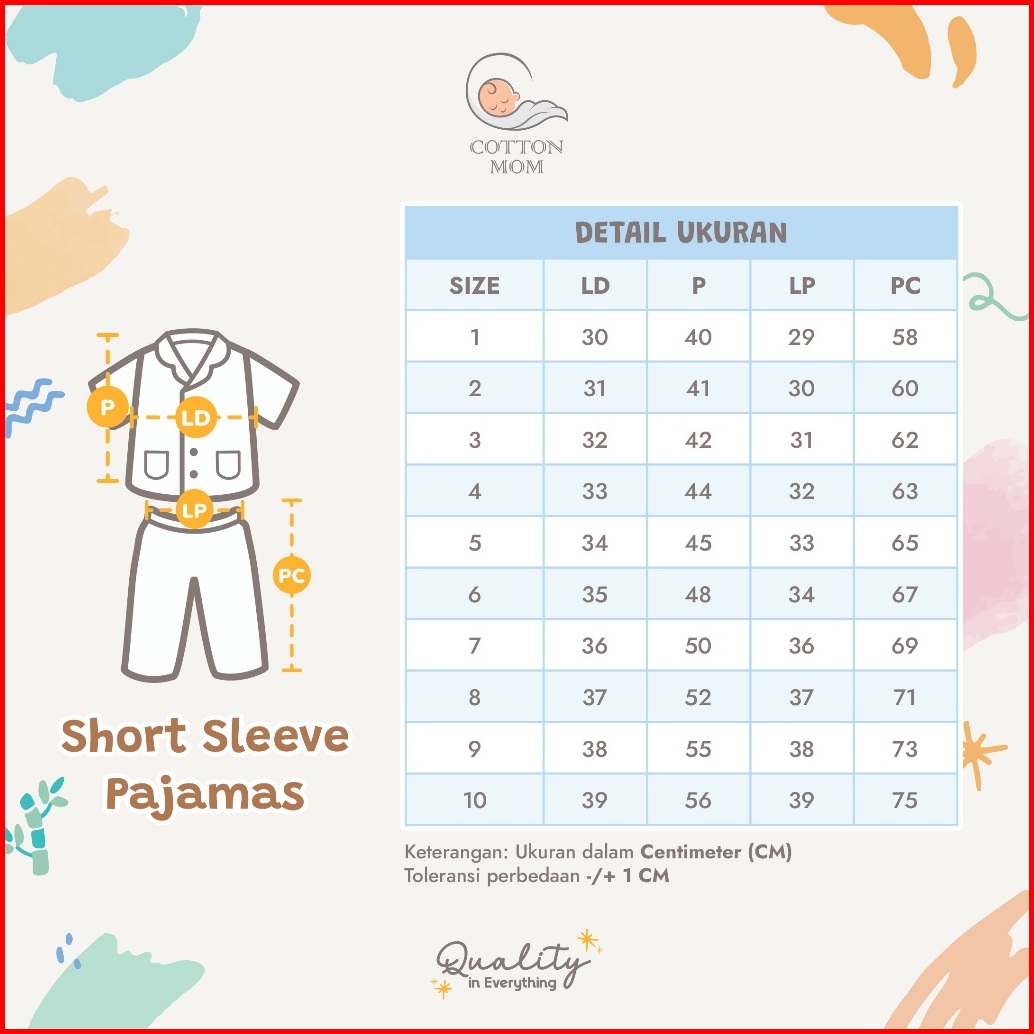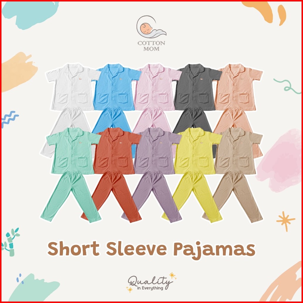 Cottton Mom Setelan Baju Tidur Piyama Terracota Kancing Lengan Pendek Anak-anak