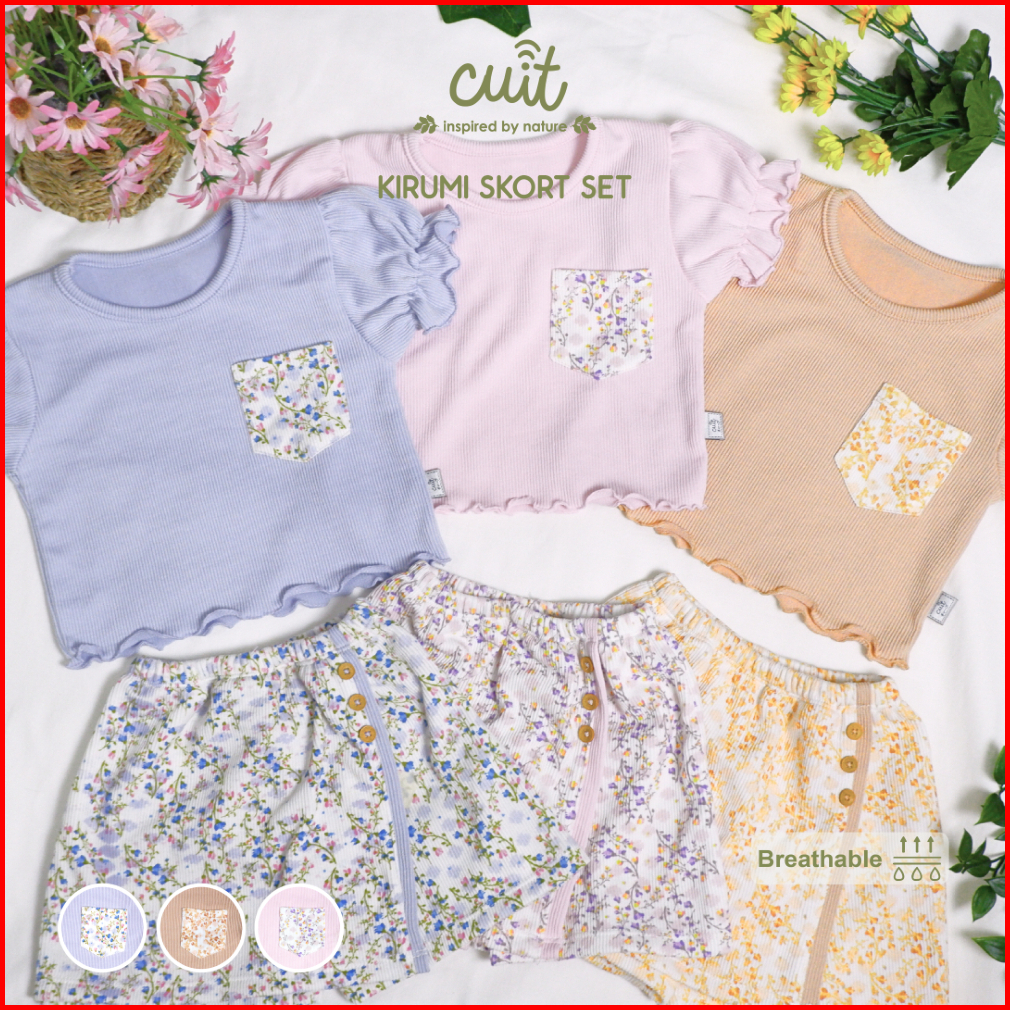 Cuit Setelan Anak Perempuan Skort Set Celana Rok Kirumi