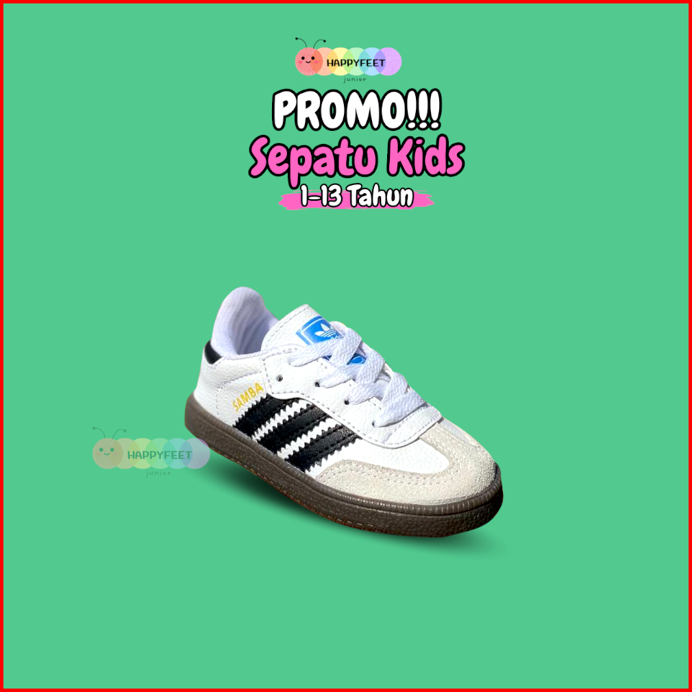 Sepatu Anak Samba Sd Laki Laki Perempuan Hitam Putih Usia 1 - 9 Tahun Original 100