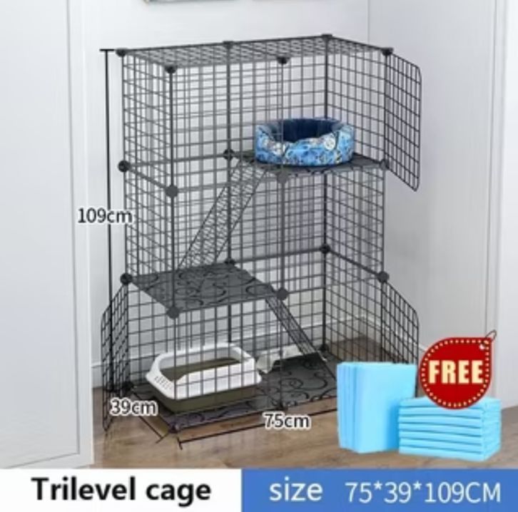 3 Lapisan Set Kandang Kucing Kandang Anjing Pagar Kucing Anjing Pet Cage Pagar Besi DIY