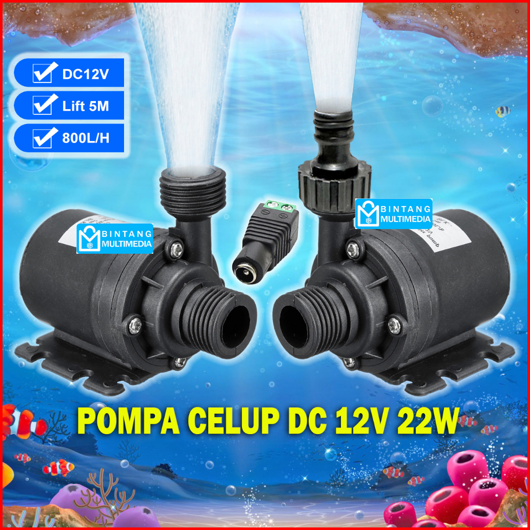 Pompa Air Celup Dc 12v 22w 800l H 5m Hidroponik Cuci Motor Mobil Aquarium Ikan Submersible Pump Brushless Elektrik Pendo
