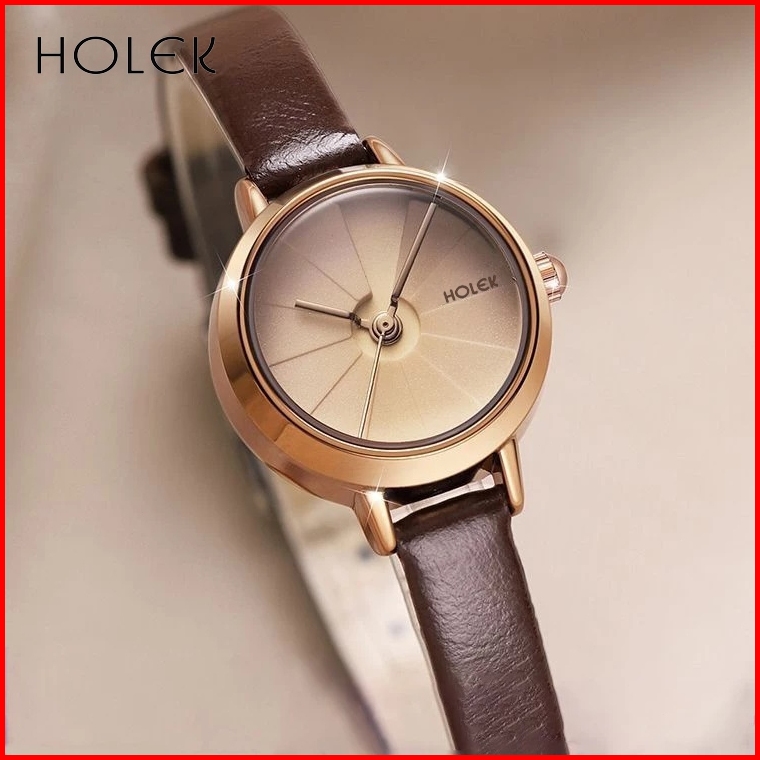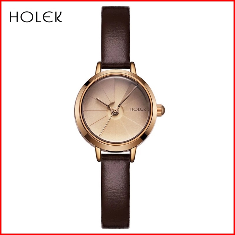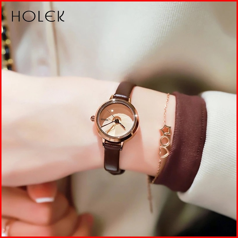 Holek 193 Jam Tangan Wanita Tali Kulit Asli Asli Jam Tangan Wanita Retro Korea Mini Elegan Modis Tahan Air Kotak Hadiah