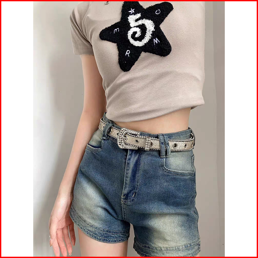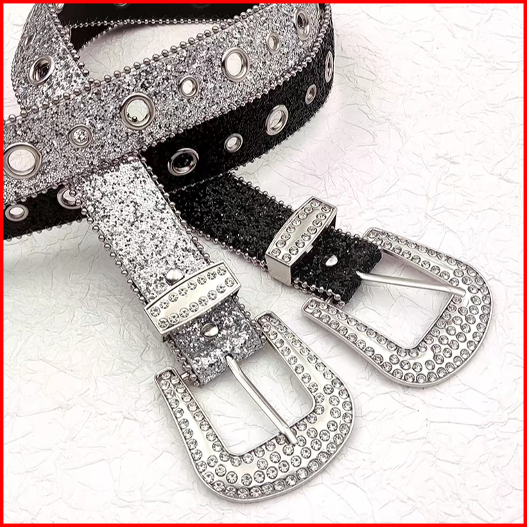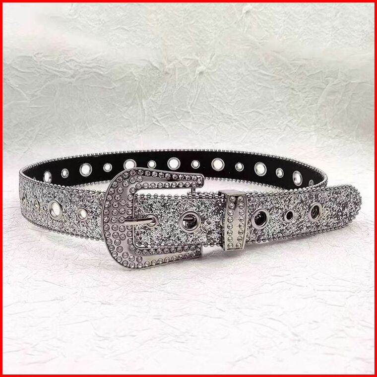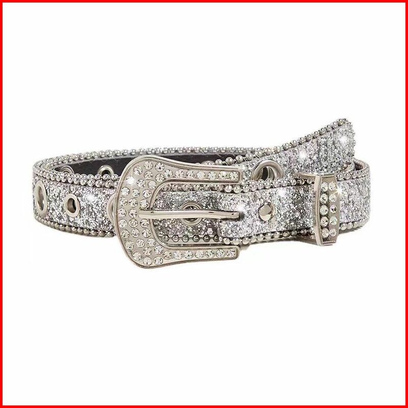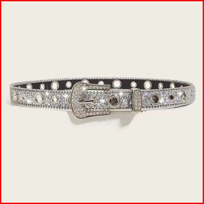 Bgs-337 Ikat Pinggang Wanita Belt Wanita Kelip-kelip Kristal Lubang-lubang Keren Model Kekinian Jaman Now