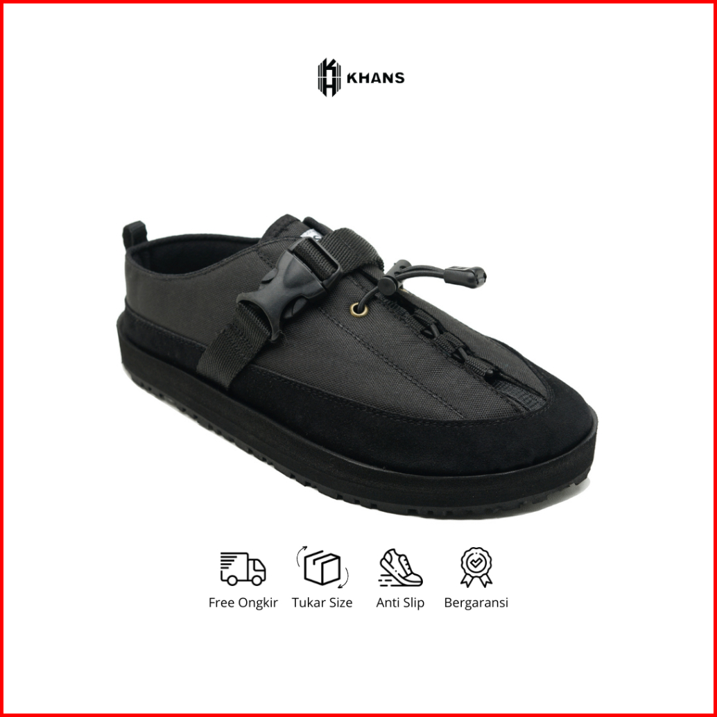 Khans - Sandal Mule Slip On Casual Pria Wanita - Forest Black