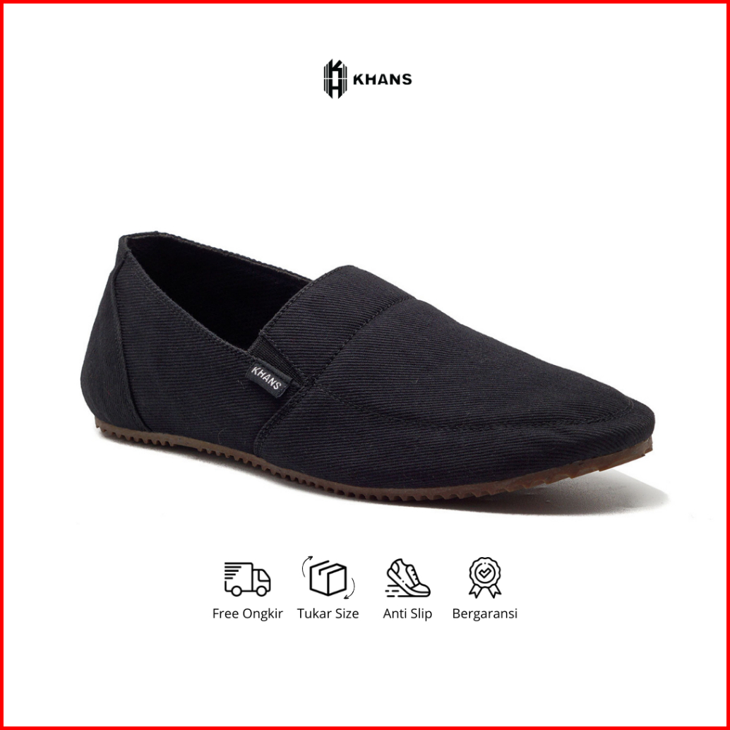 Khans - Sepatu Slip On Pria Wanita - Kante Black