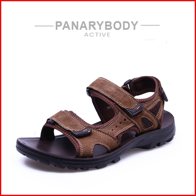 Panarybody Sandal Pria Kulit Asli Sepatu Sandal Pria Kulit Sandal Cowok Kulit Pria Gaya Trendi Kekinian Nyaman Digunkan