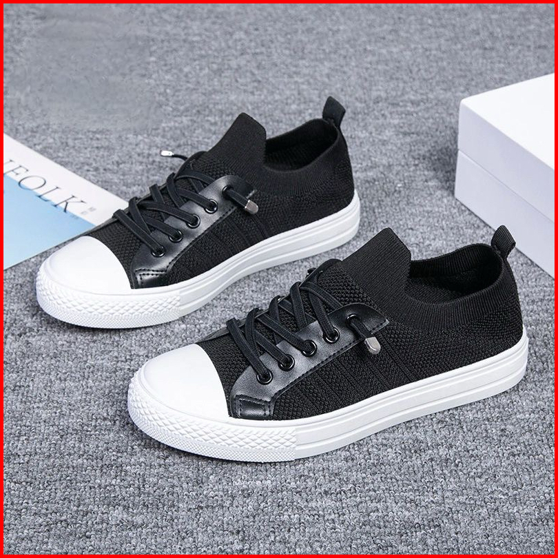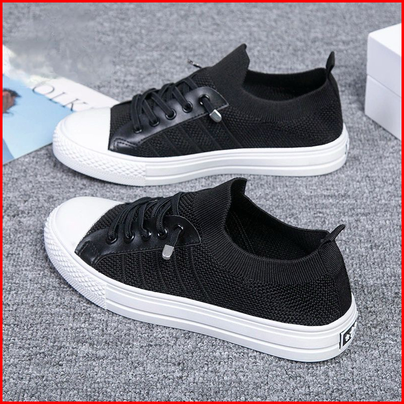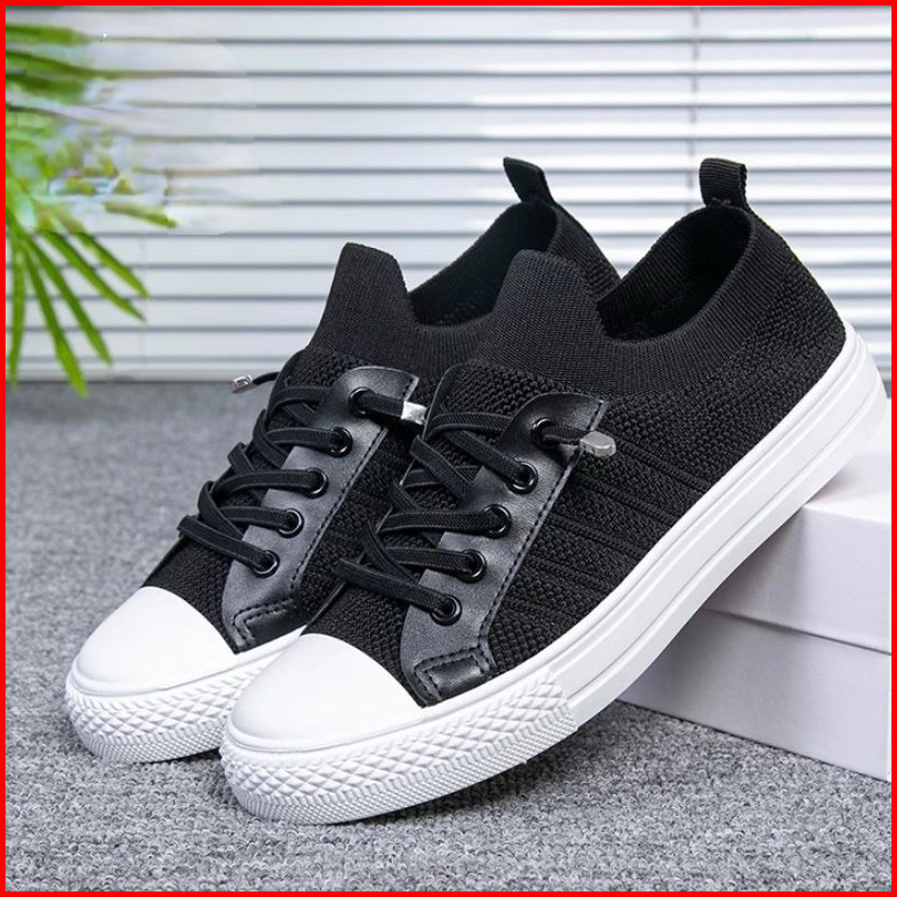 Svekes Sepatu Sneakers Wanita Pria Sekolah Versi Korea Rajut Slip-on 718b Hitam