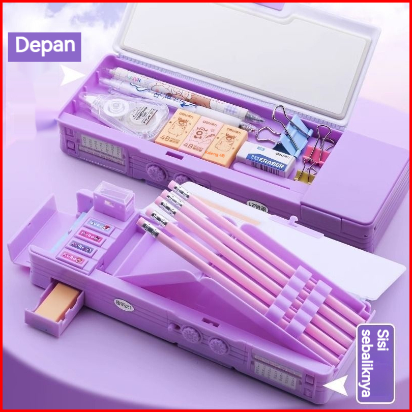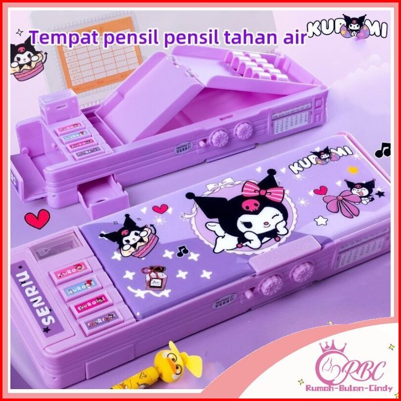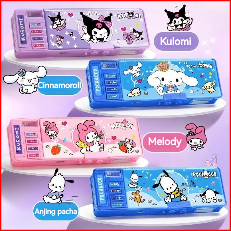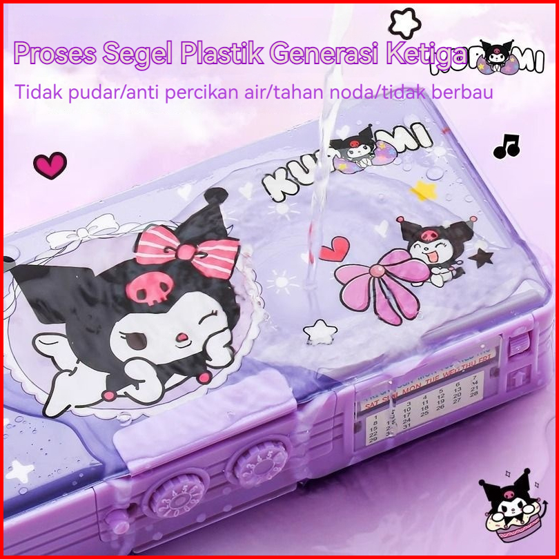 Penjual Lokal Tempat Pensil Kata Sandi Multifungsi Kuromi Kotak Pensil Kedua Sisi Pola Kartun Sanrio