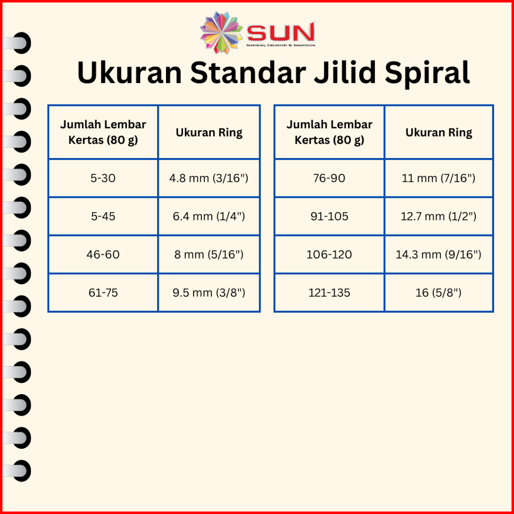 Spiral Kawat Ring Kawat Jilid Spiral 3 1 Ukuran A5 24 Lubang A4 34 Lubang F4 38 Lubang Warna Hitam Putih