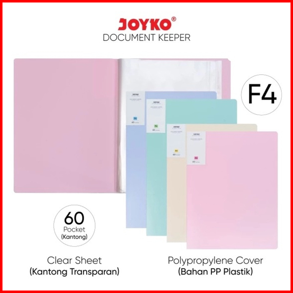 Joyko Dokumen Keeper Clear Holder Dk-f60f4 F4 60 Sheet Pastel Color