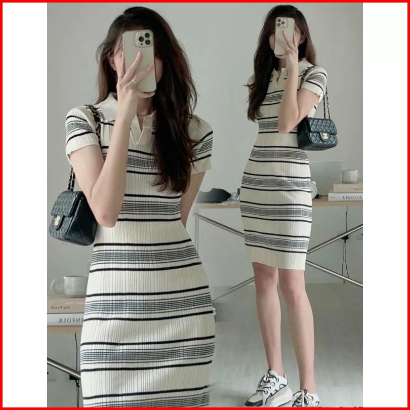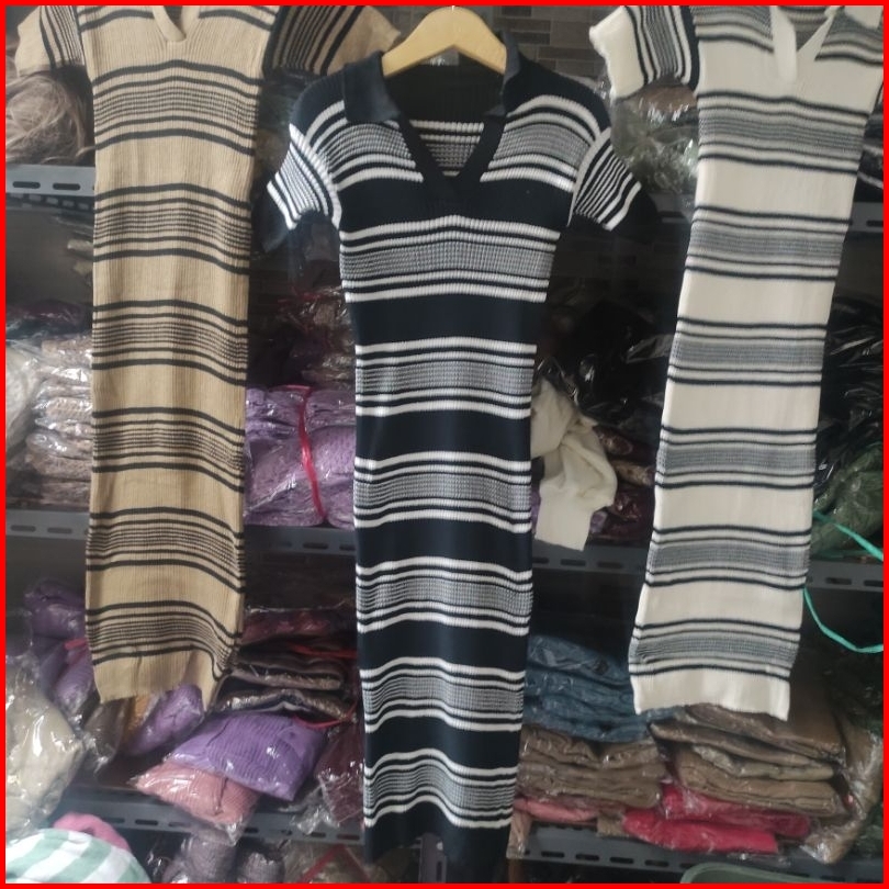 Dress Rajut Wanita Iisaii - Mini Dress Perempuan Terbaru Motif Salur