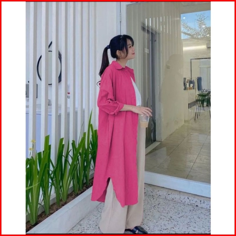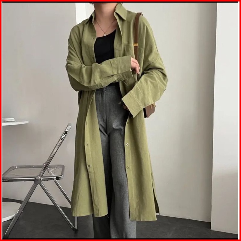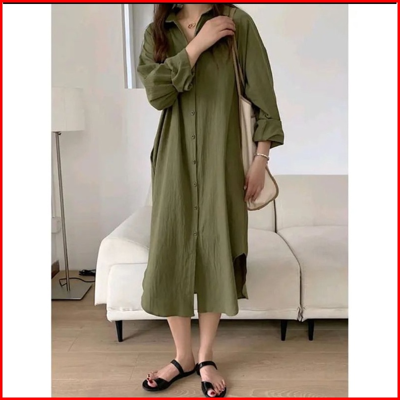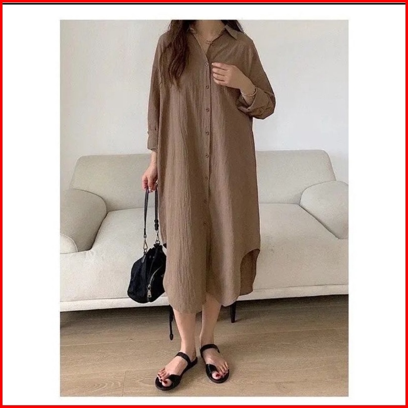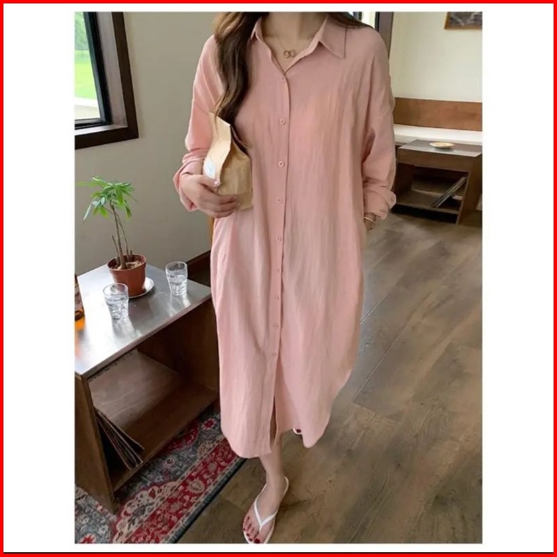 Oversize Dress-shirt Dress-long Outer Linen Cringkle-midi Dress Oversize