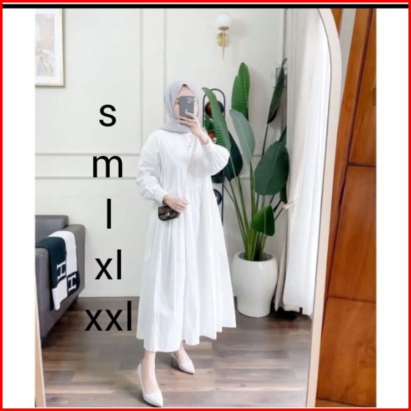 Baju Midi Dress Putih Polos Remaja Kekinian Crinkle Airflow Terbaru Uk S M L Xl Xxl
