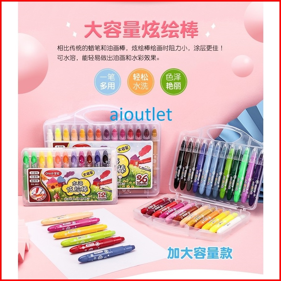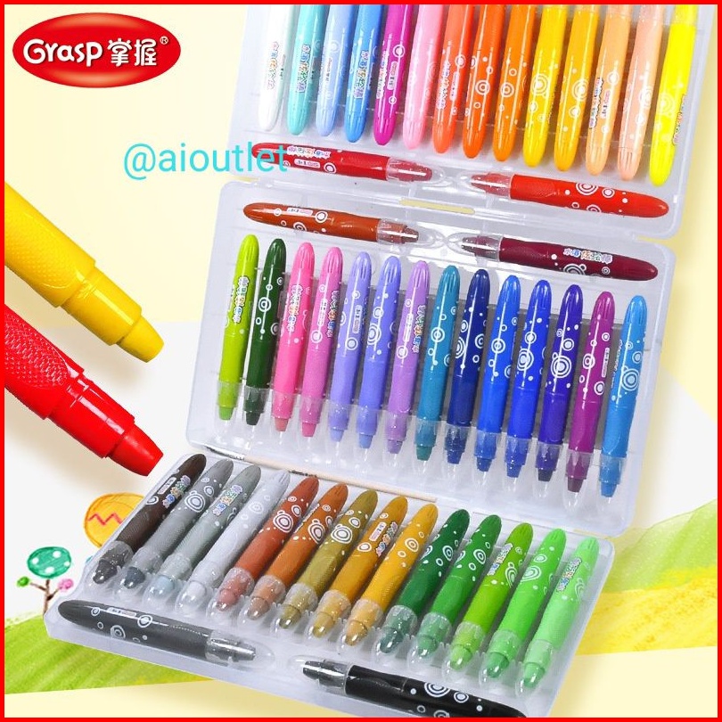 Silky Crayon Grasp 12 24 36 48 Warna Besar Sedang Kecil Crayon Licin Watercolori