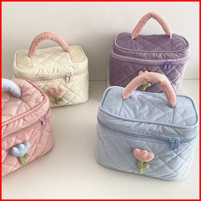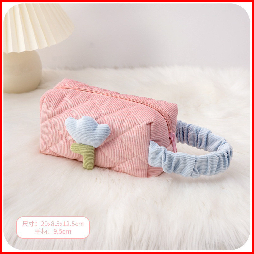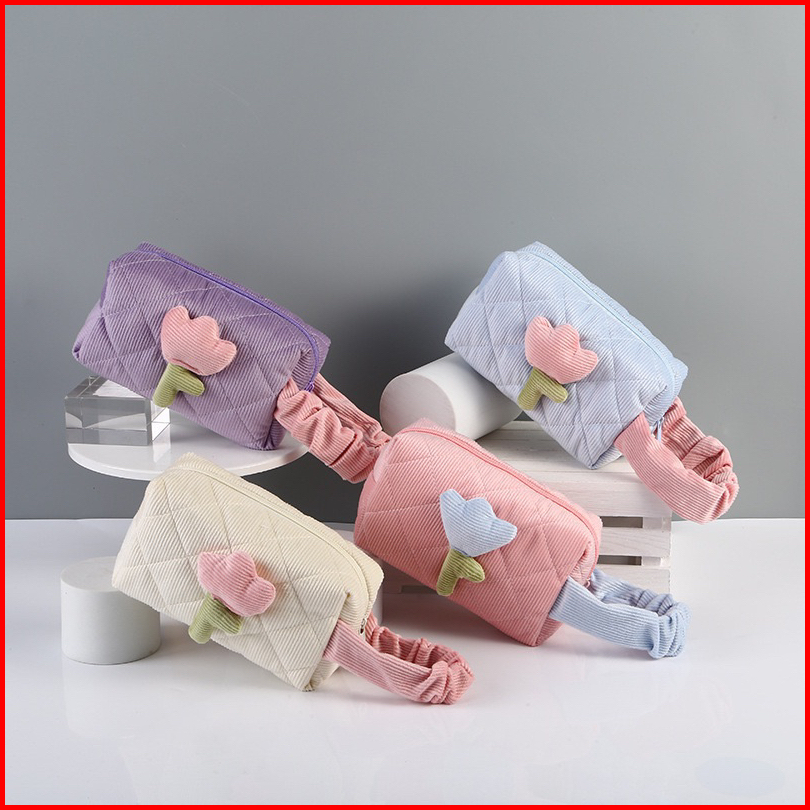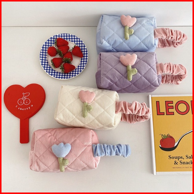 Kensho Kotak Pensil Sleting Motif Bunga Tulip Flower Handle Pastel Pouch Makeup Aesthetic Tulip Tas Aksesoris Wanita Luc