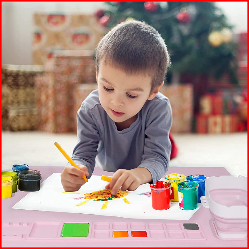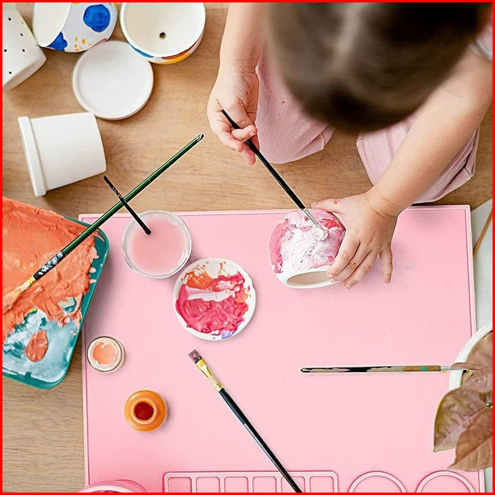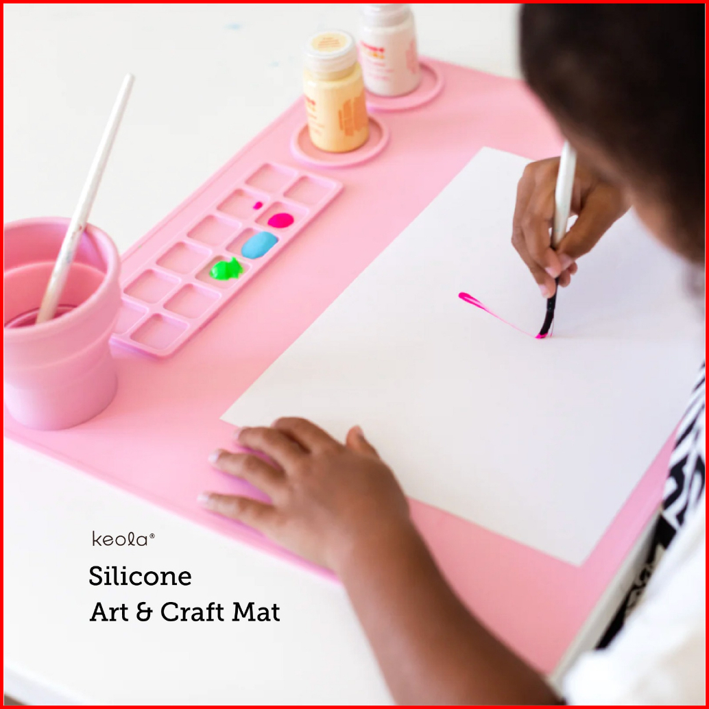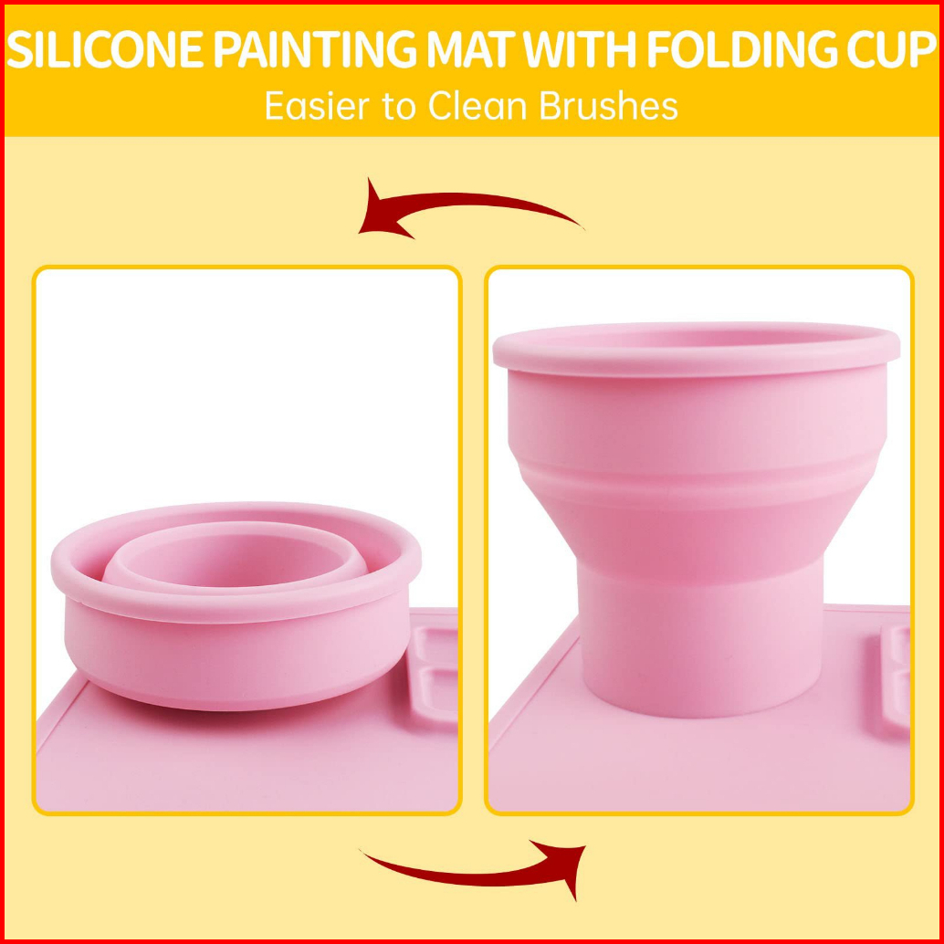 Keola Silicone Painting Mat Art Mat With Water Cup And Paint Holder Alas Lukis Silikon Wadah Cat Paintbrush Washer Brush
