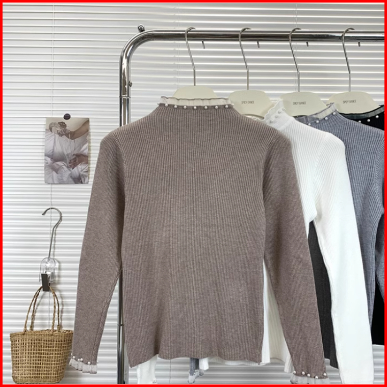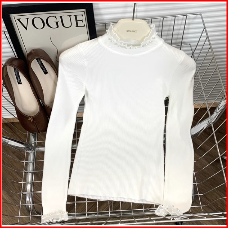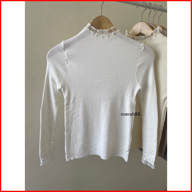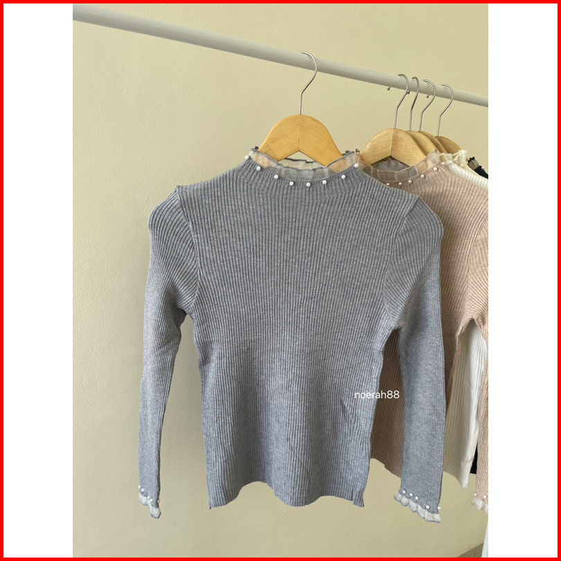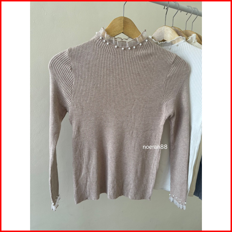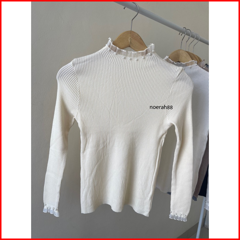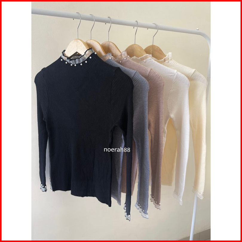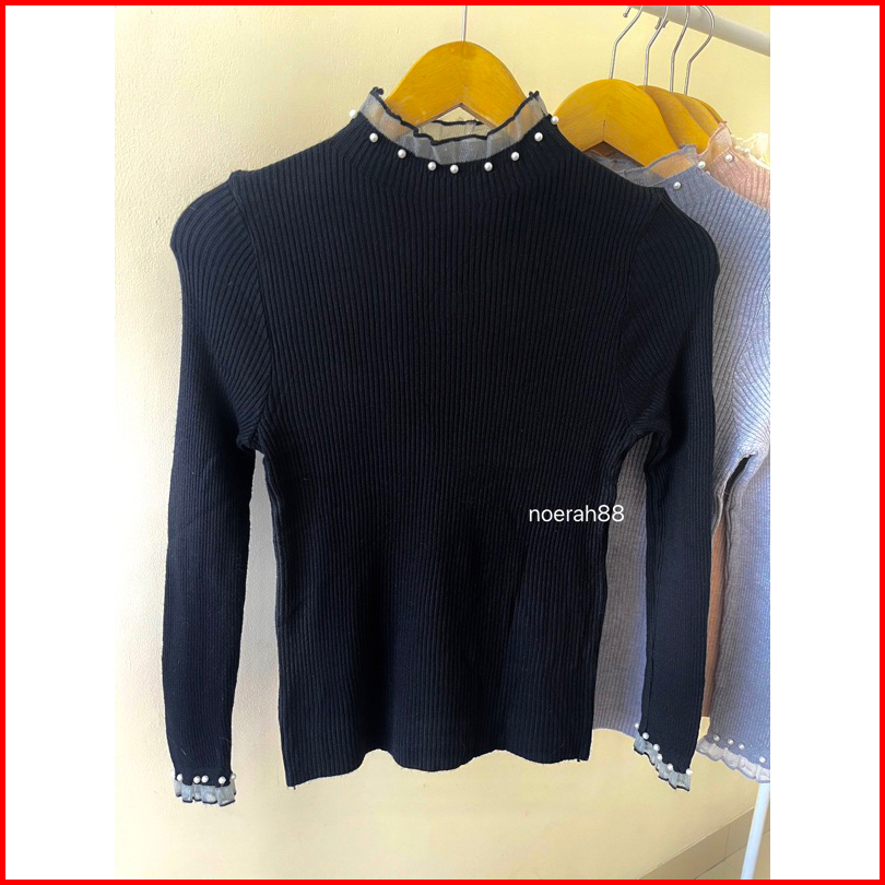 Rajut Turtleneck Halus Body Slim Ramping Motif Renda Mutiara