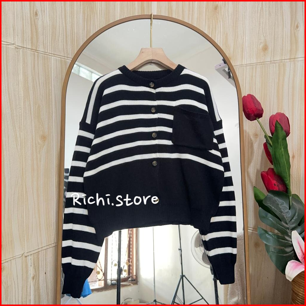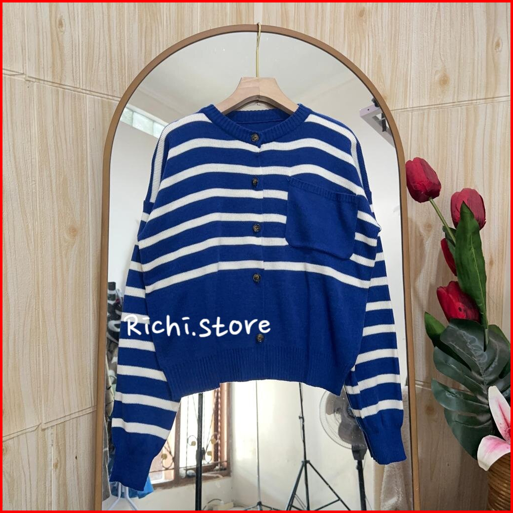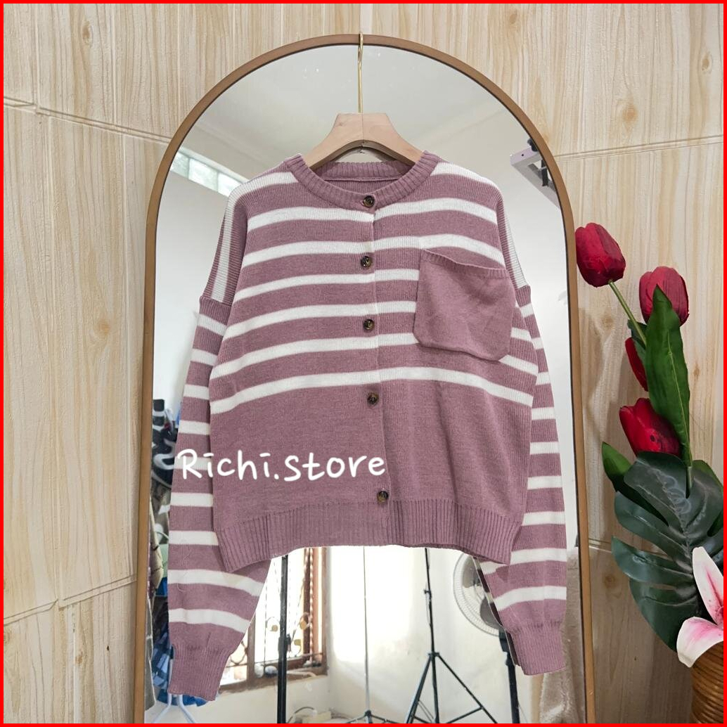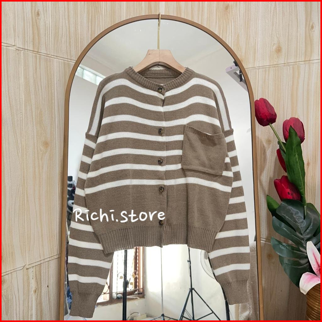 Flora Cardigan Rajut Wanita Full Kancing Motif Setrip