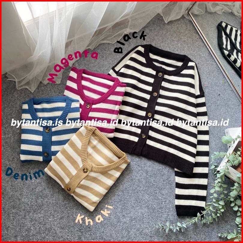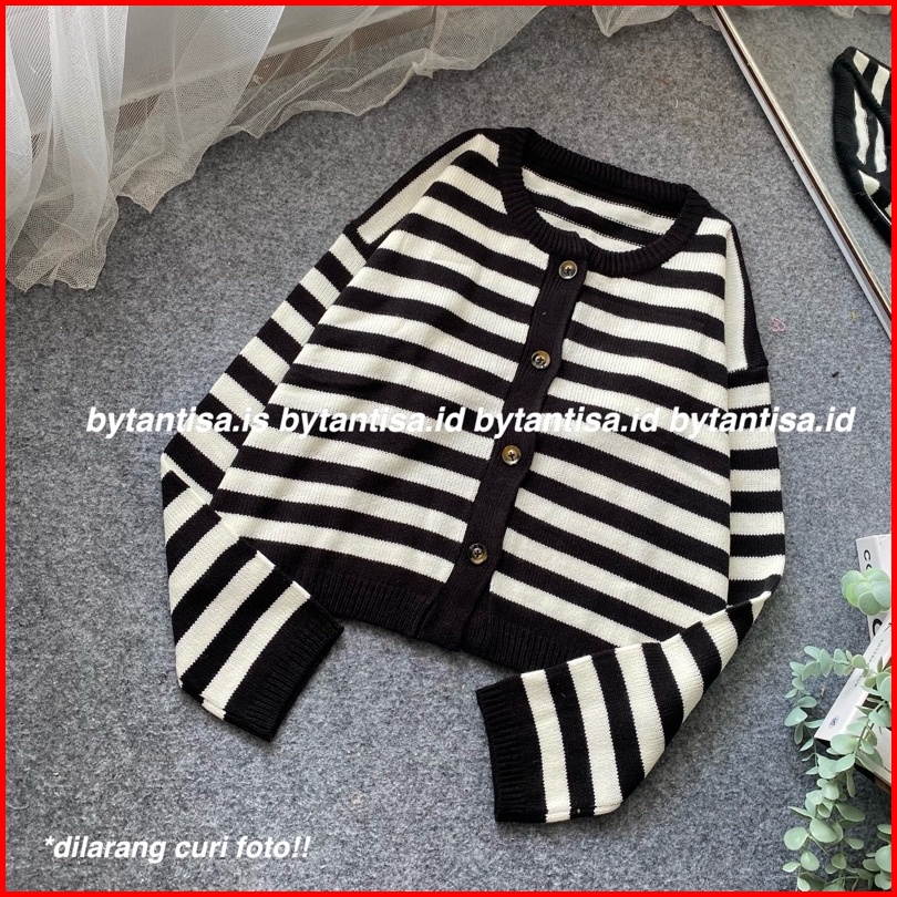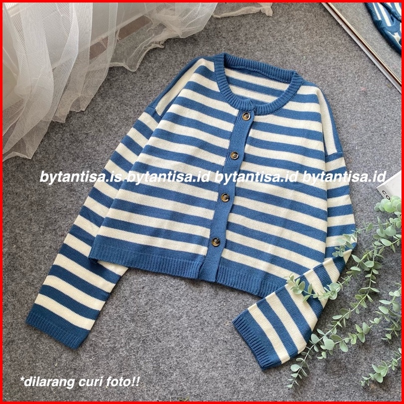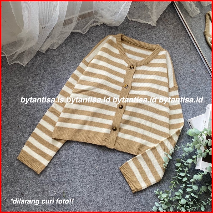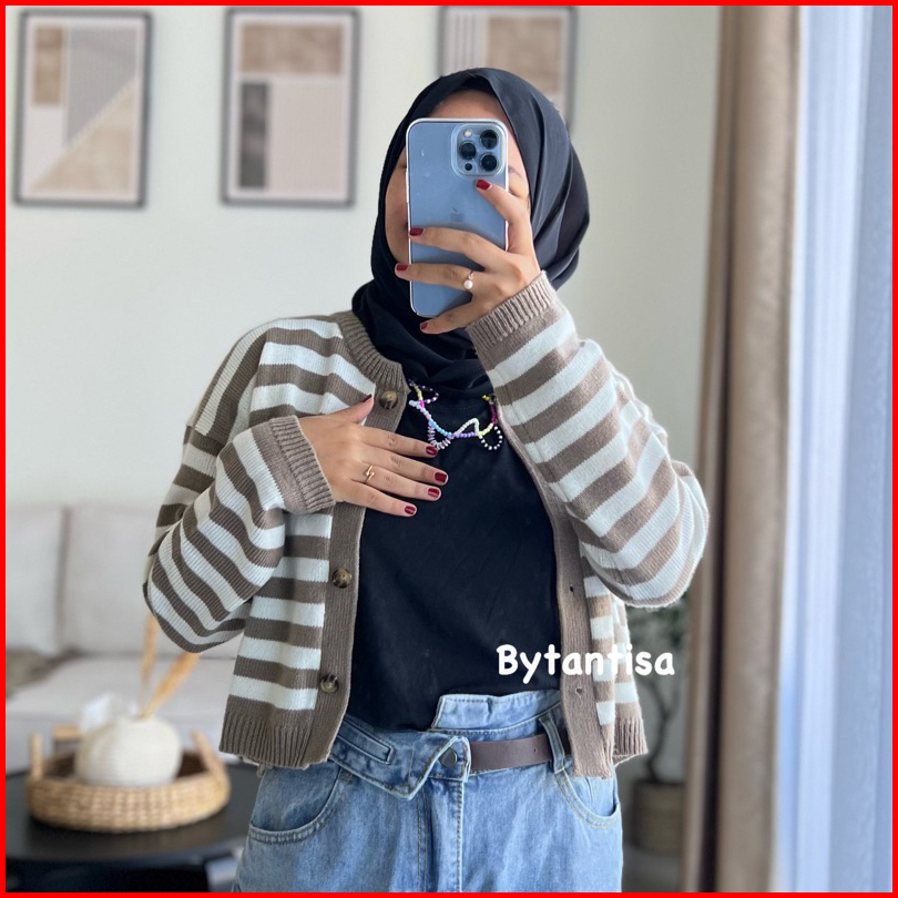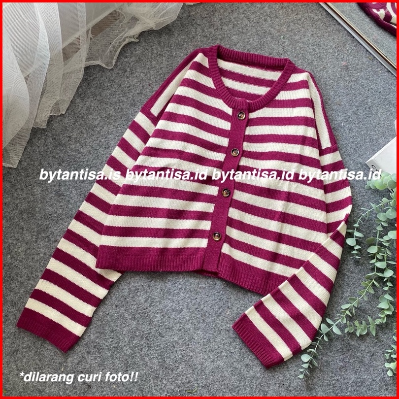 Cardigan Crop Rajut Motif Garis Indri Model Pendek