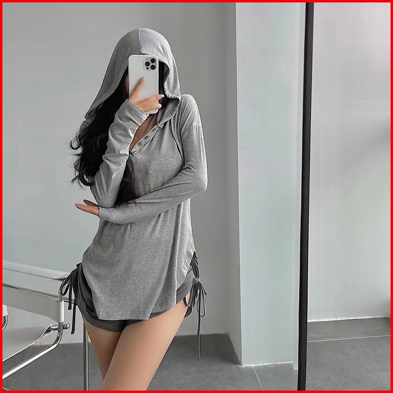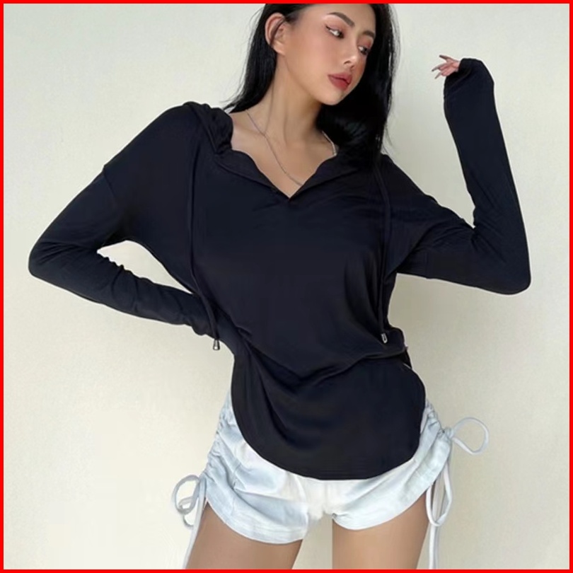 Premiumcasual Loose Fit V Neck Long Sleeve Hoodie Shirt 7312 S M L