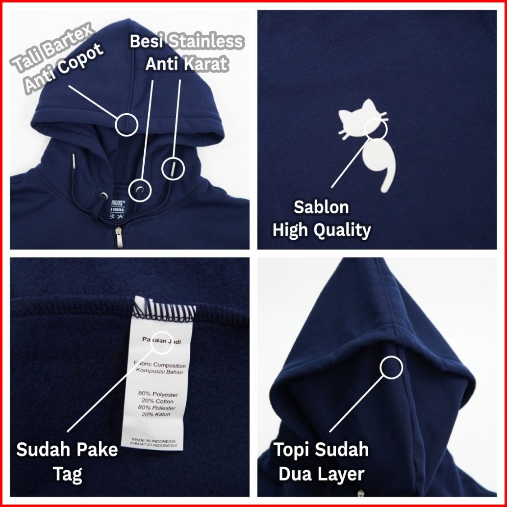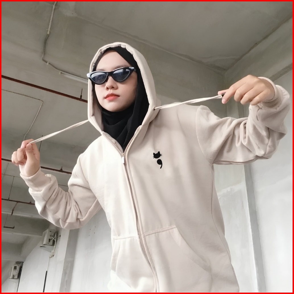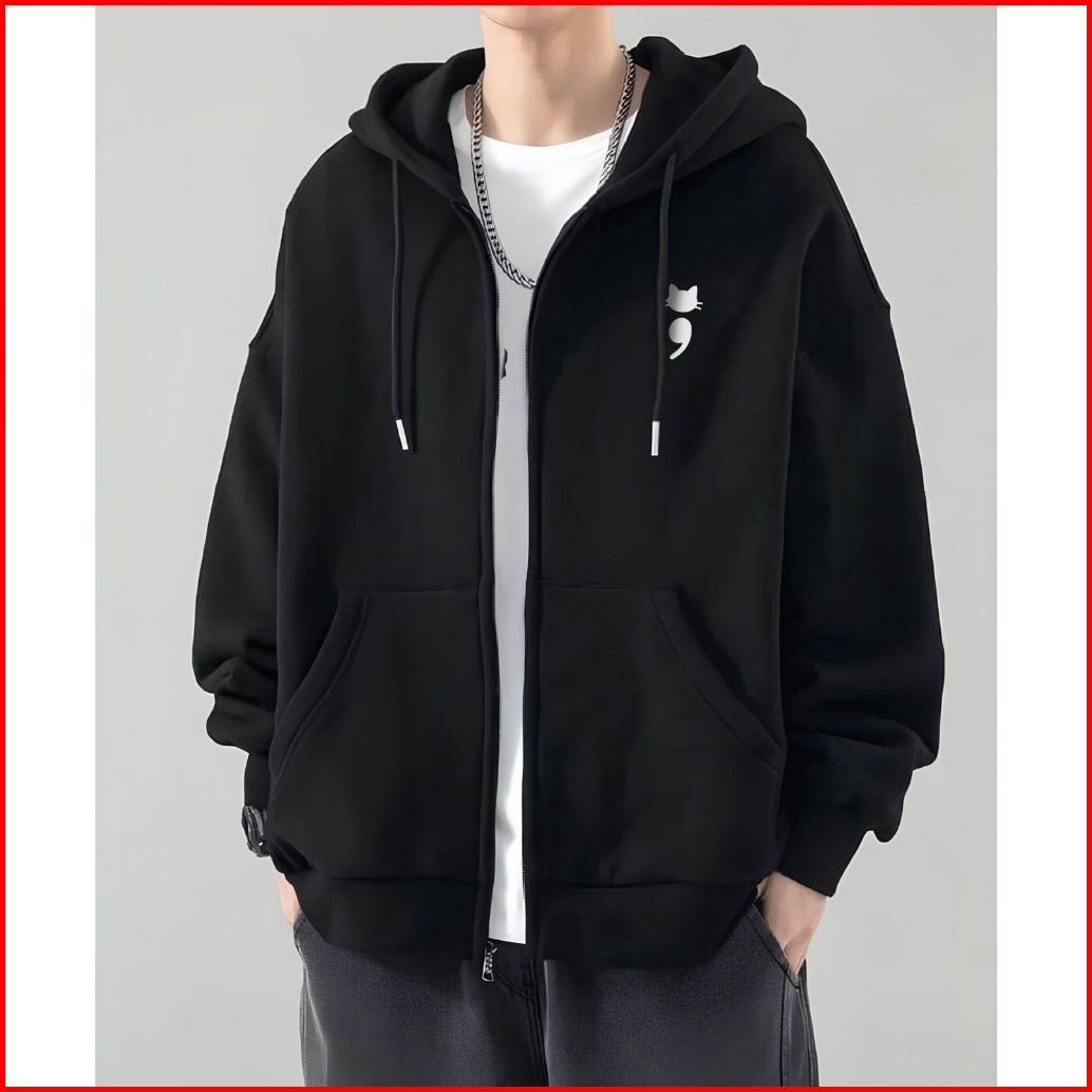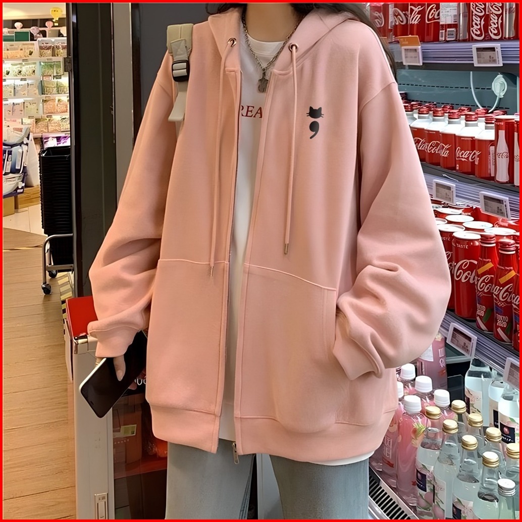 Parisdivarious Jaket Zipper Comma Cat Bahan Fleece Premium Tebal Size S - Xxl Pria Wanita