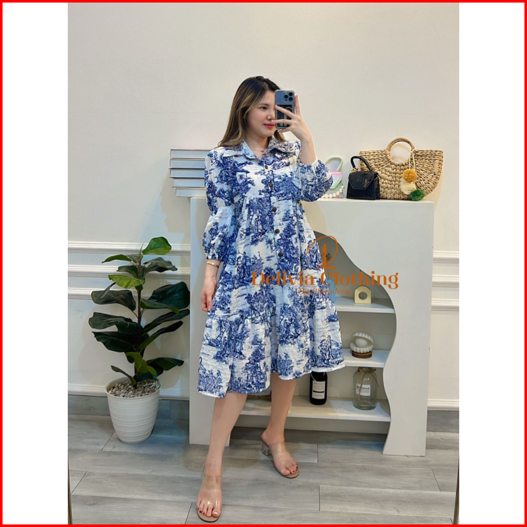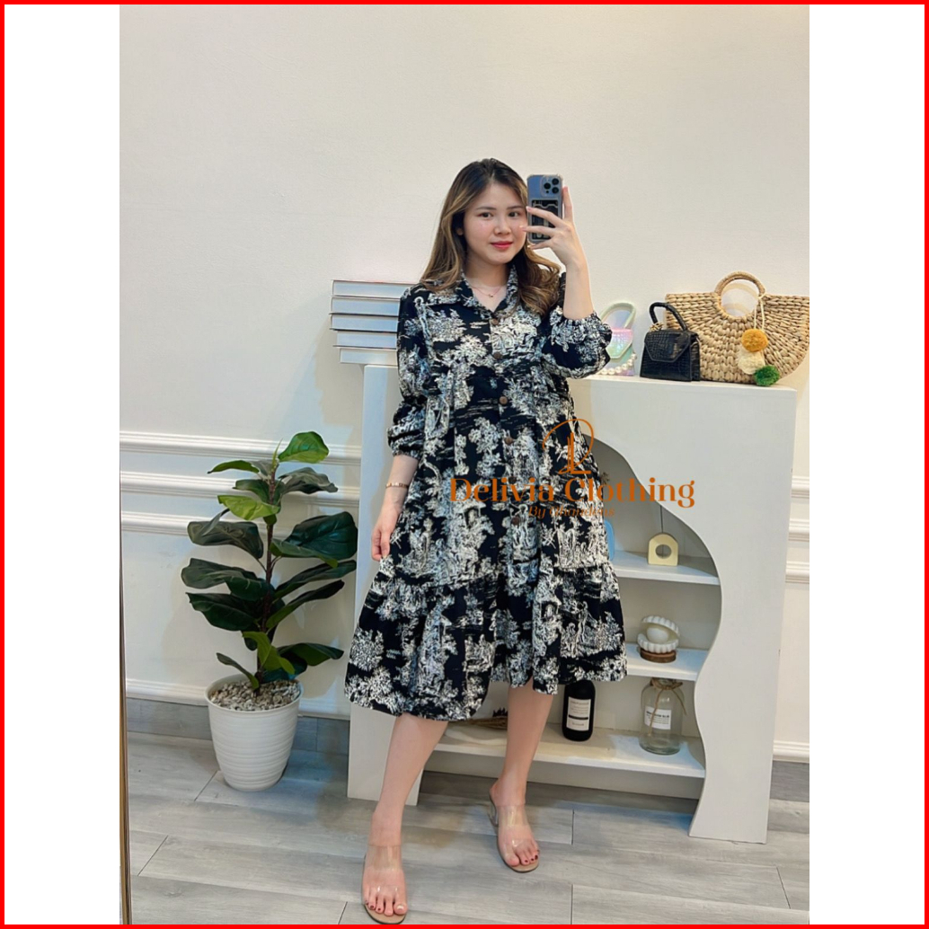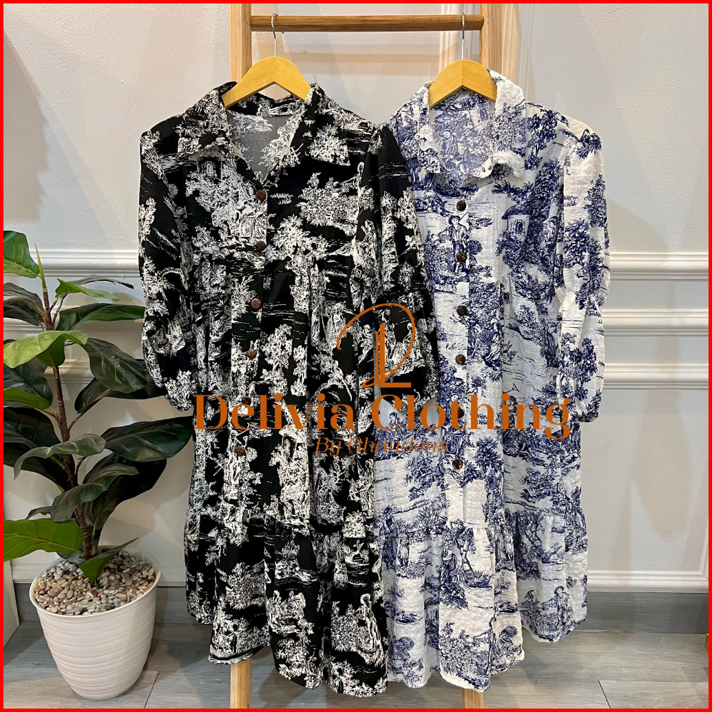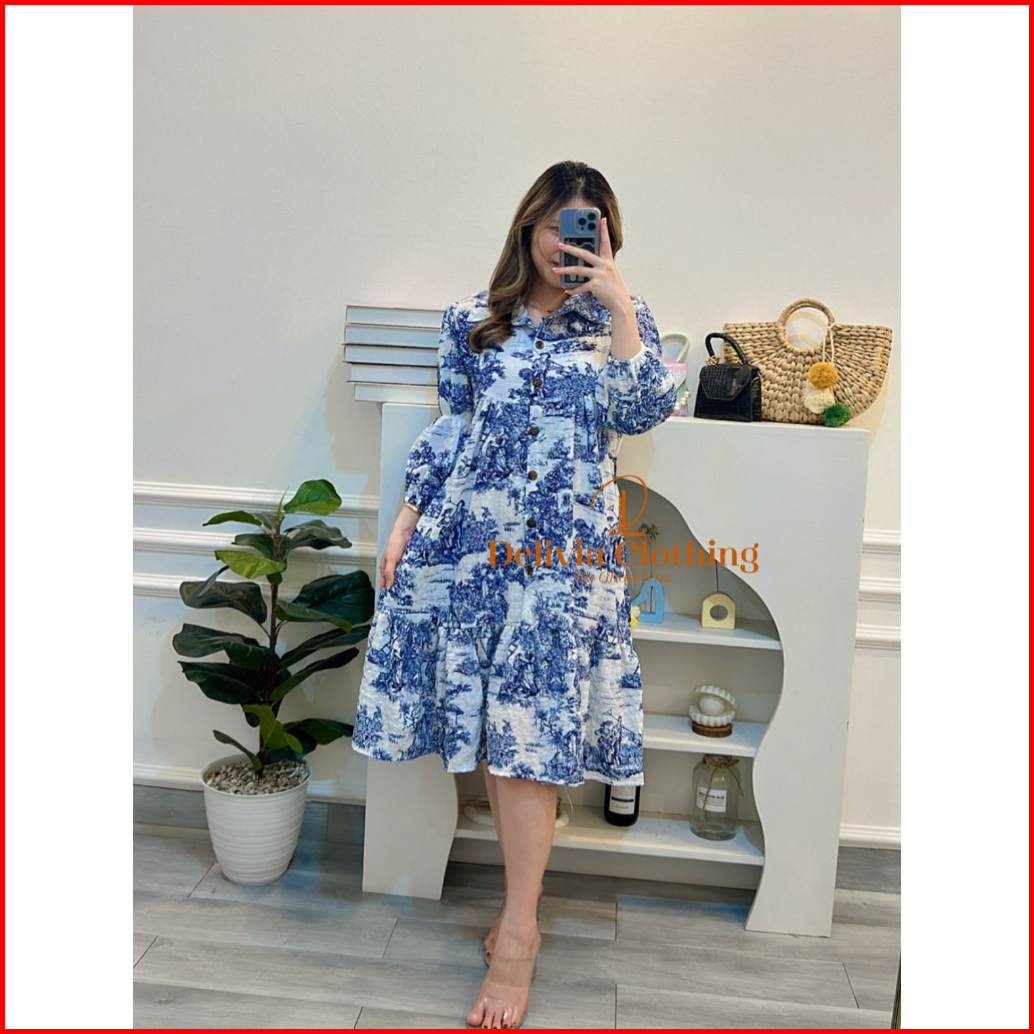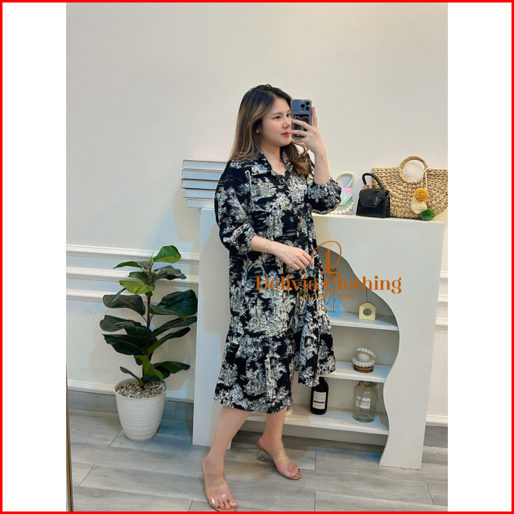 Delivia - Midi Dress Viora Button Crincle 7583-10