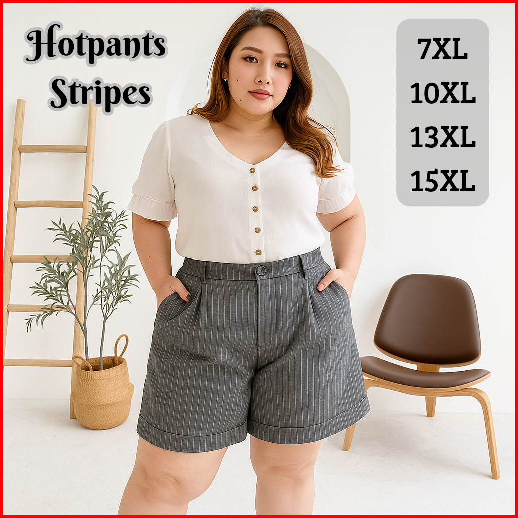 Salur-celana Pendek Wanita Jumbo Stripe Premium Big Size Hotpants Polos Korea Pants Style