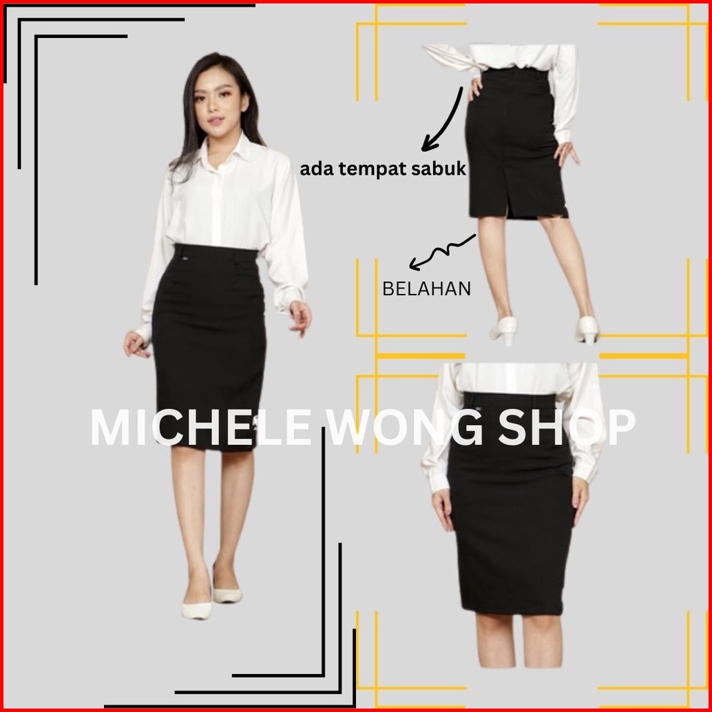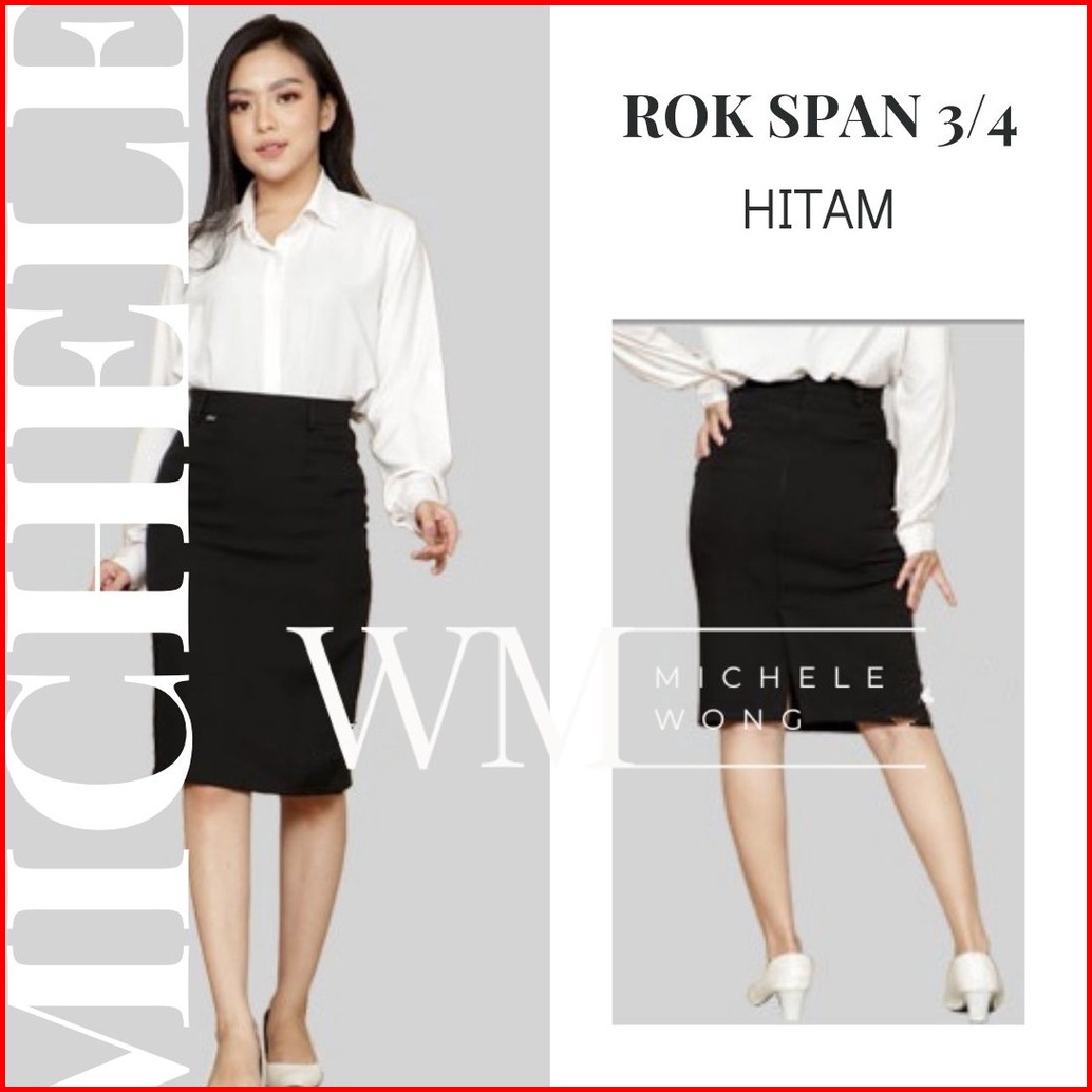 Rok Span Pendek 3 4 Selutut Hitam Belahan Belakang Wanita Kerja Kantor Formal