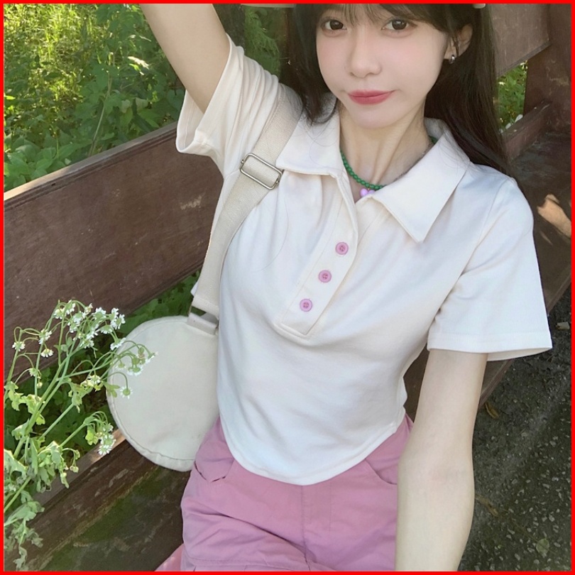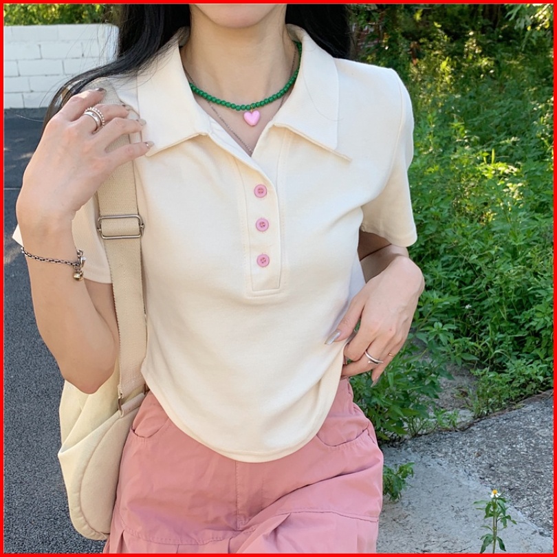 Yuruma Japanese Polo Leading Short -sleeved T -shirt Short Cute Top Girl