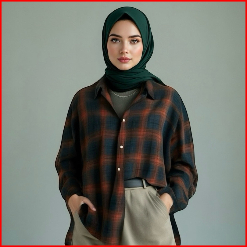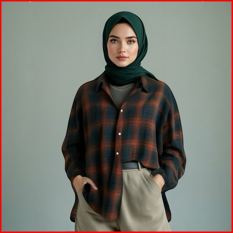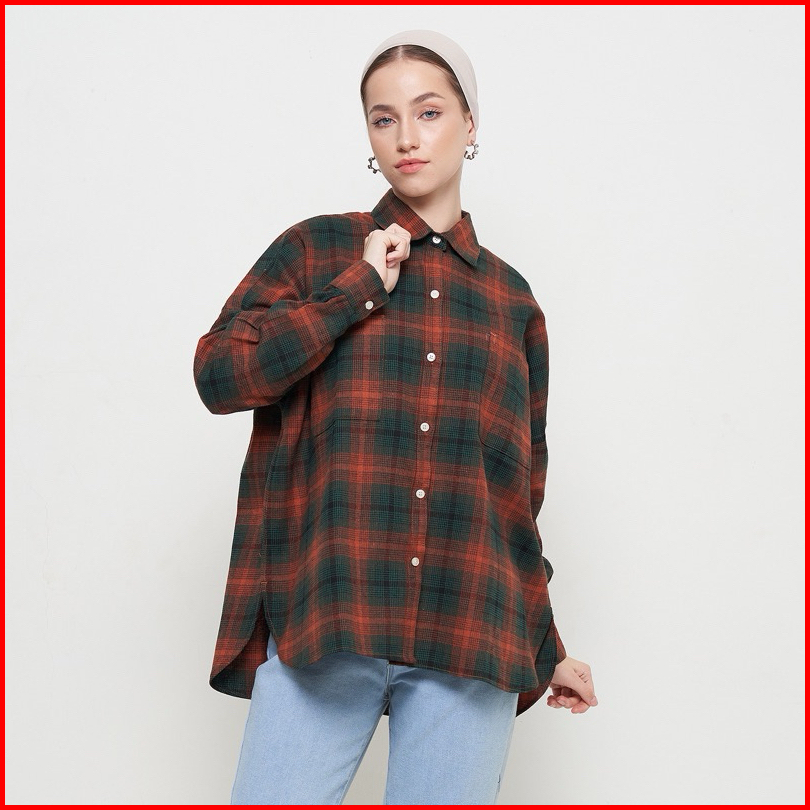 Peternation Kemeja Flanel Wanita Wool Panjang Onyx Oversized Wn4