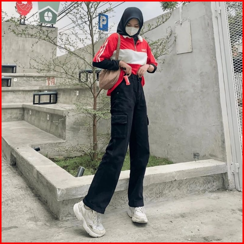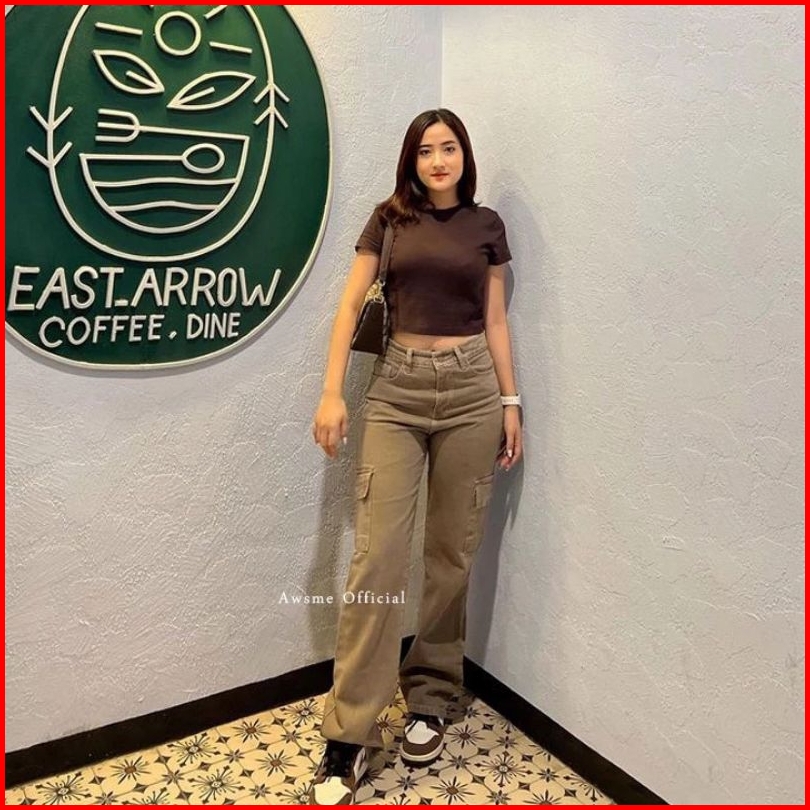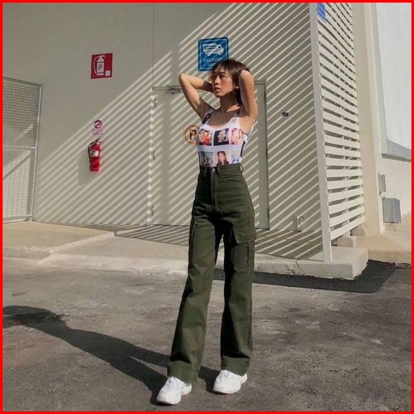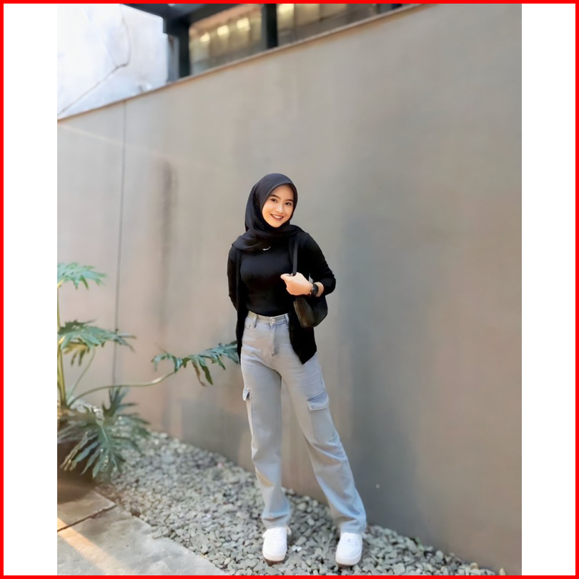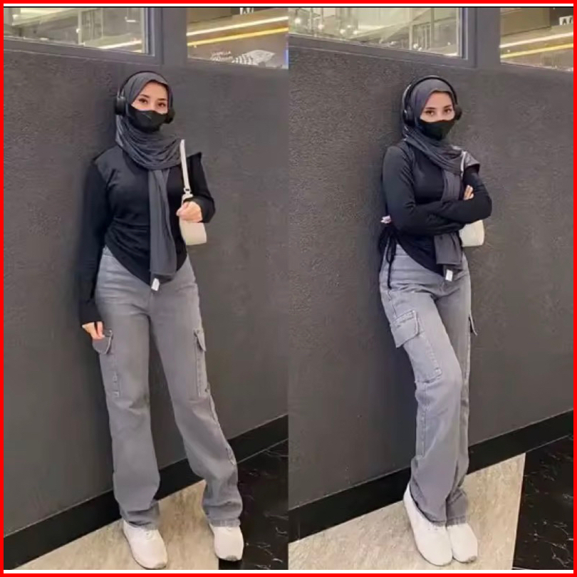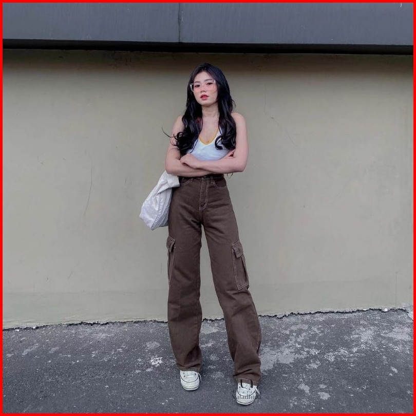 Celana Jeans Cargo Highwaist Wanita Loosepants-cargo Jeans Wanita