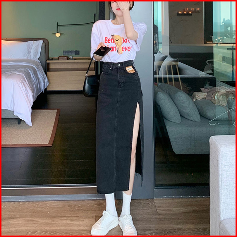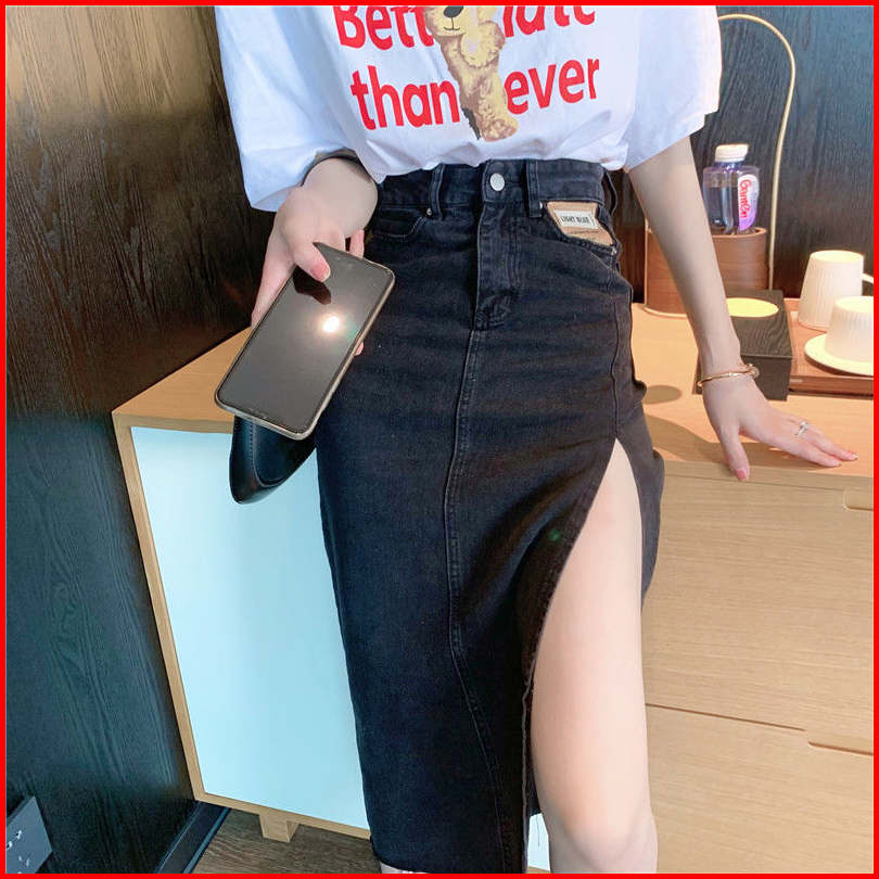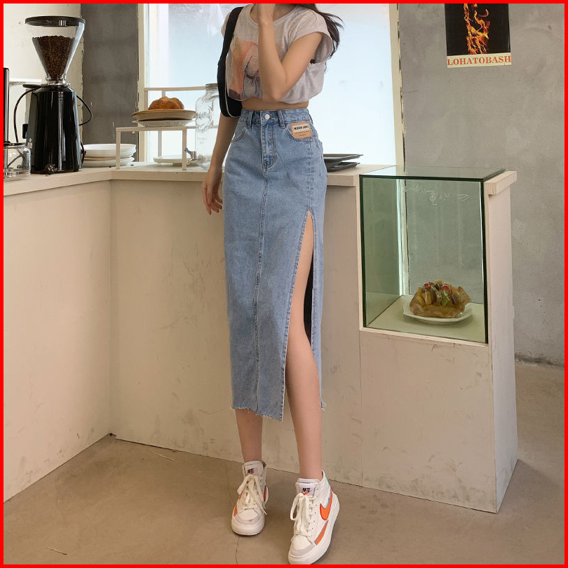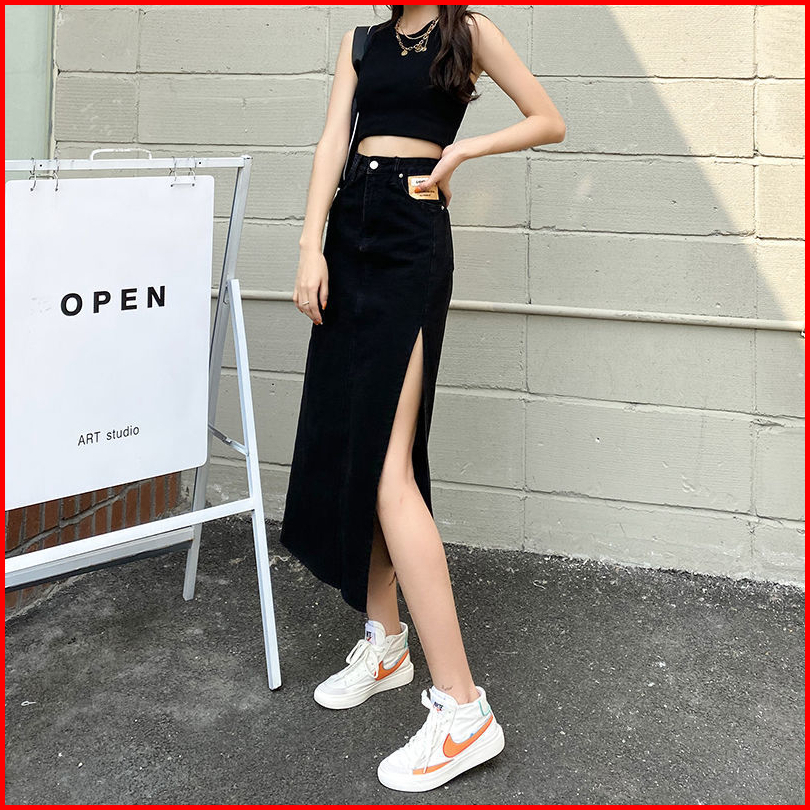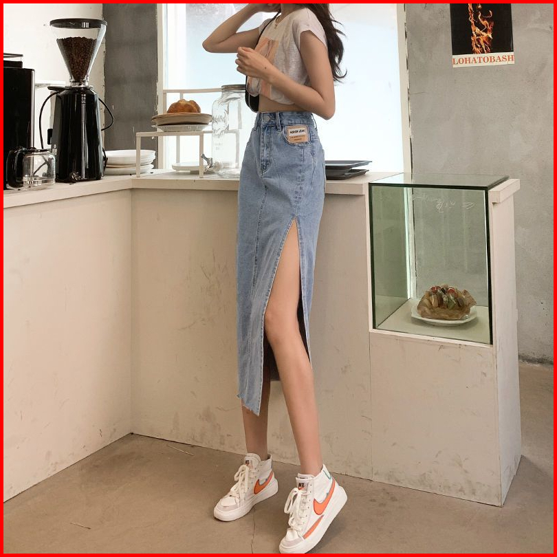 Rok A Line Denim Kekinian Rok Jeans Korea Style Highwaist Biru Hitam