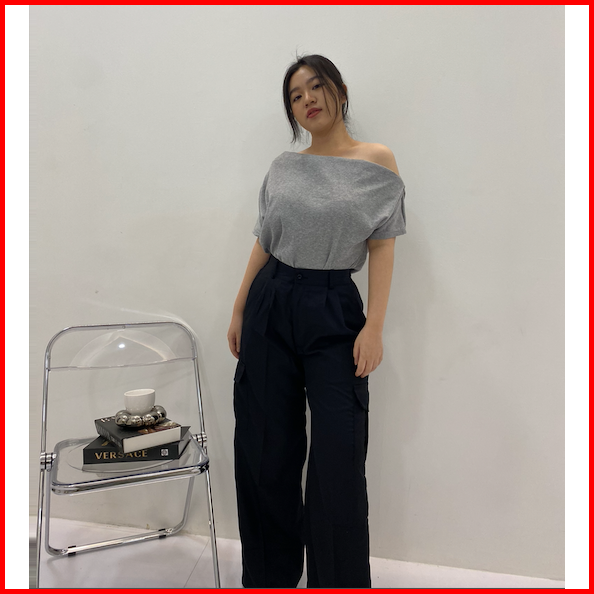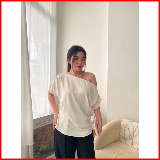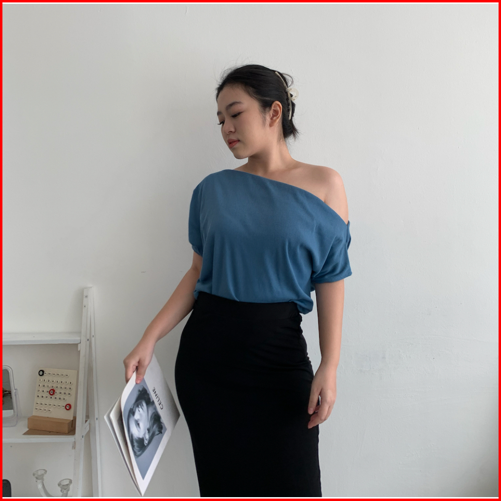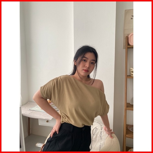 Vania L Top Miring Wanita L Off Shoulder Perempuan L Kaos Rib Knit Wanita Kantoran