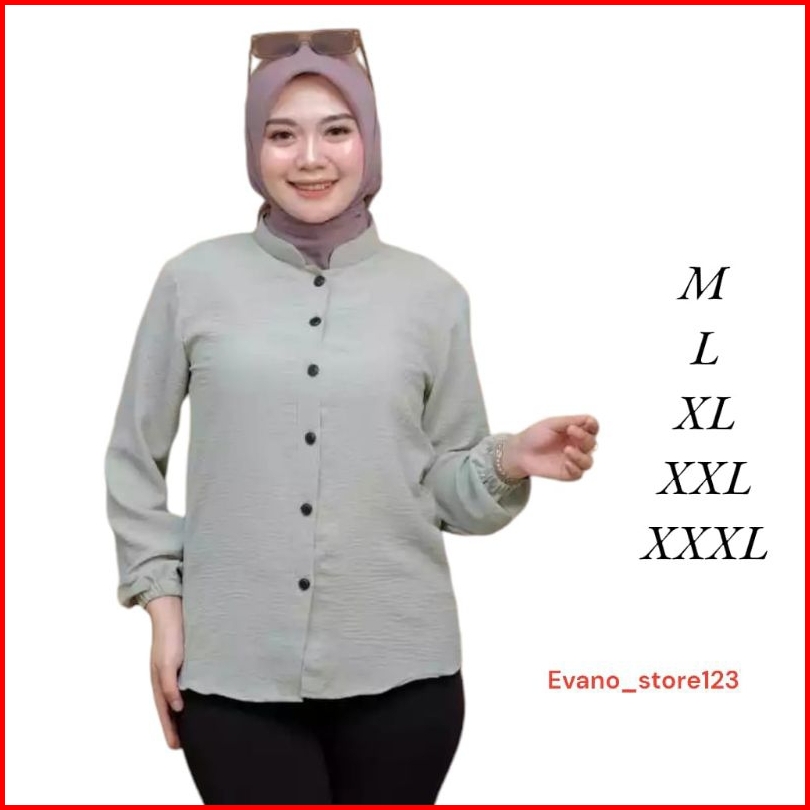 Atasan Wanita Kringkle Airflow Lengan Karet Kemeja Blouse Wanita Kekinian