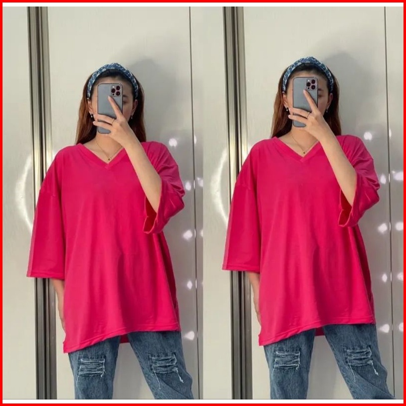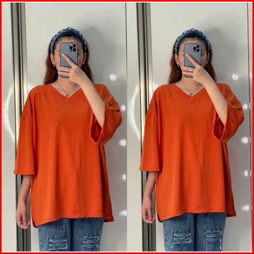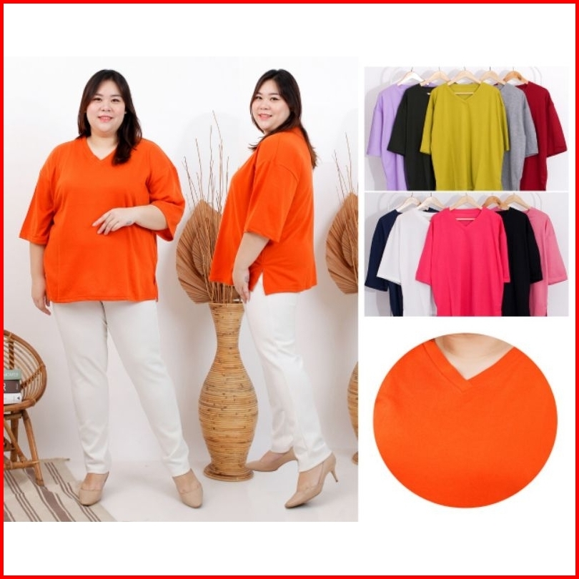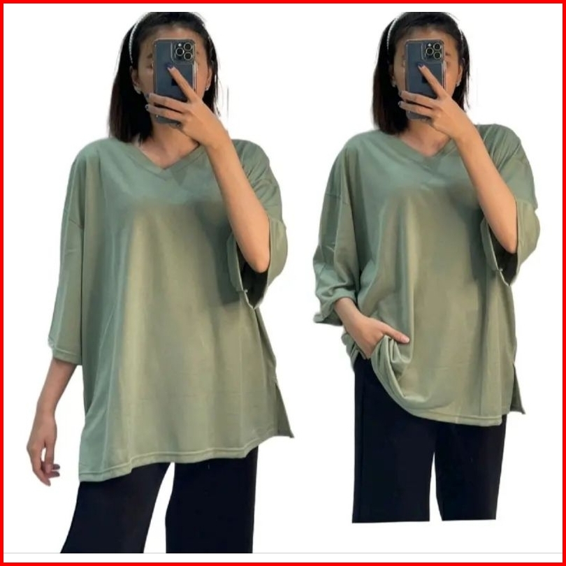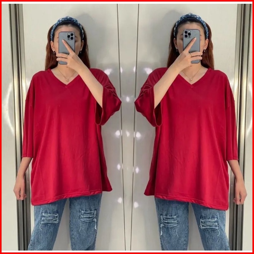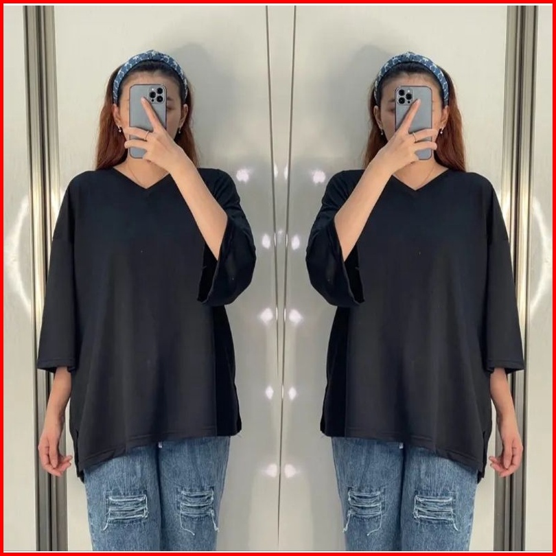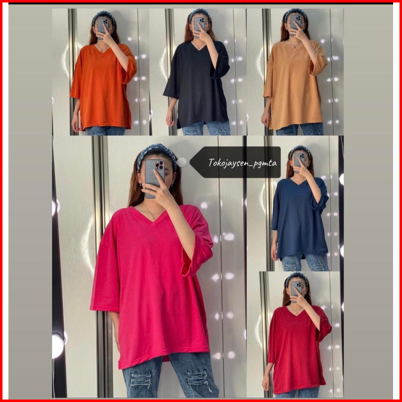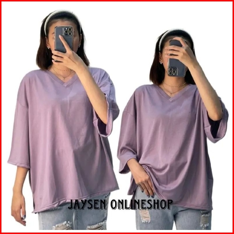 Jaysen - Atasan Kaos Vneck Ld 140cm Kaos Oversize Leher V Neck Polos Basic Babyterry Ld 140